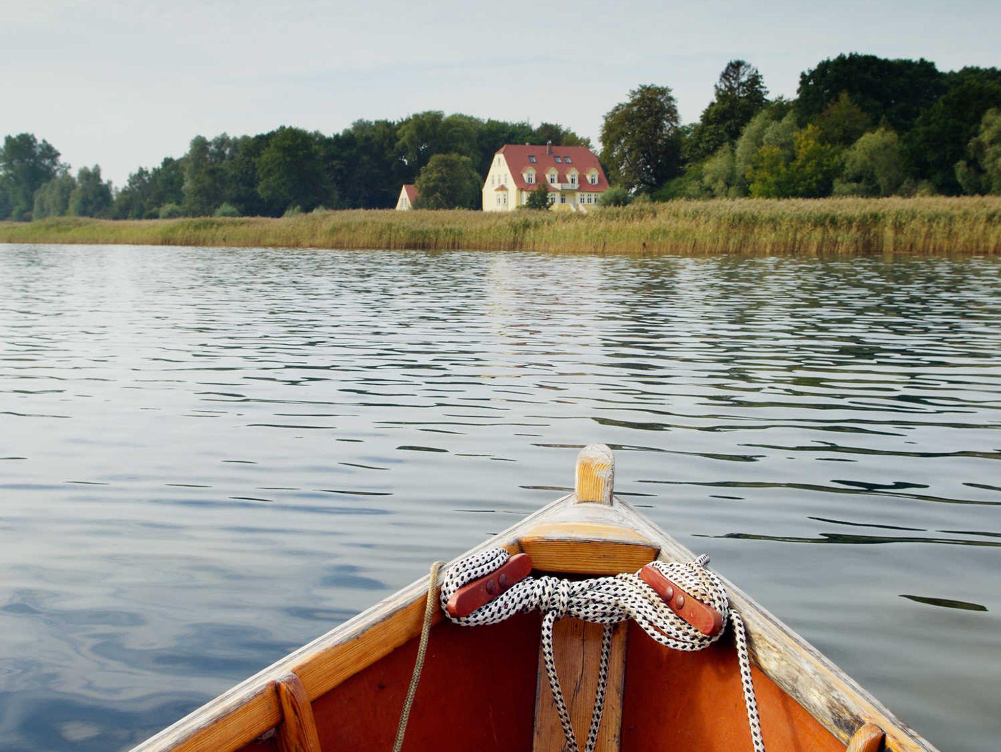 Die Ferienwohnung Nr. 6 befindet sich im zweiten Obergeschoss des Gutshauses. Die Wohnung für bis zu zwei Personen und in einer Größe von 54 m² ist hochwertig eingerichtet und besteht aus zwei Zimmern: Ein großes Wohnzimmer mit offener Küche (hochwertige Siemens-Geräte), ein großzügiges Schlafzimmer mit einem Doppelbett, einem großen Badezimmer mit Badewanne und Dusche. Die Böden der Ferienwohnung bestehen aus Eichen-Parkett. Vom Wohnzimmer und dem Balkon hat man einen sehr schönen Blick auf das Wasser und den Badesteg.