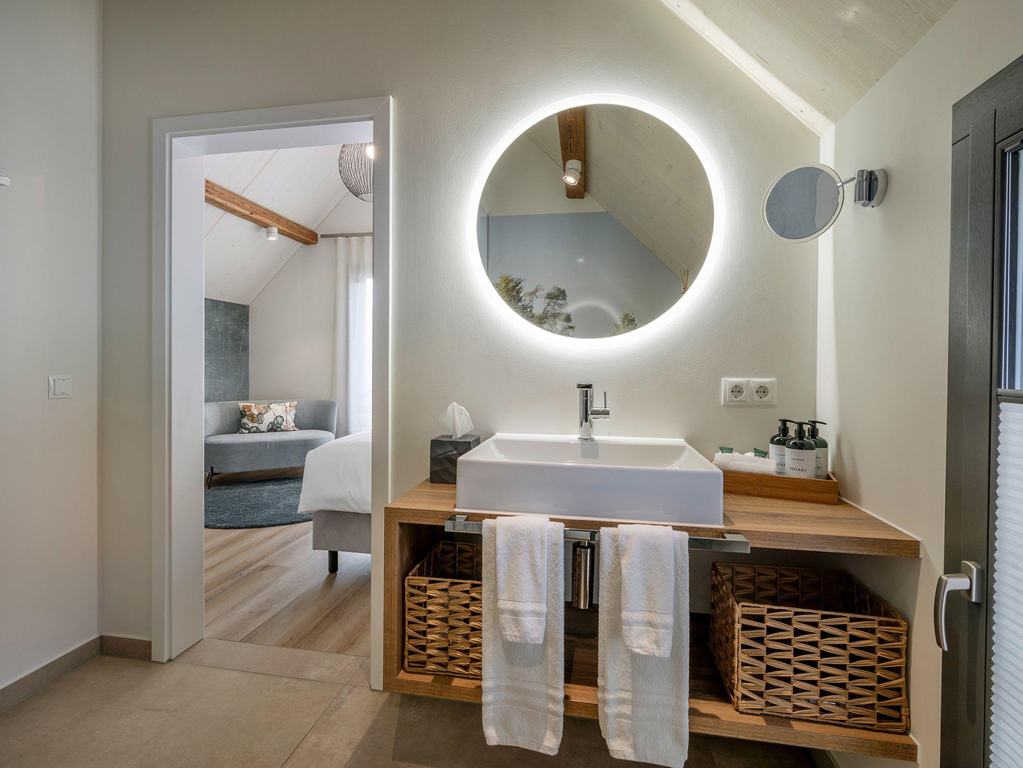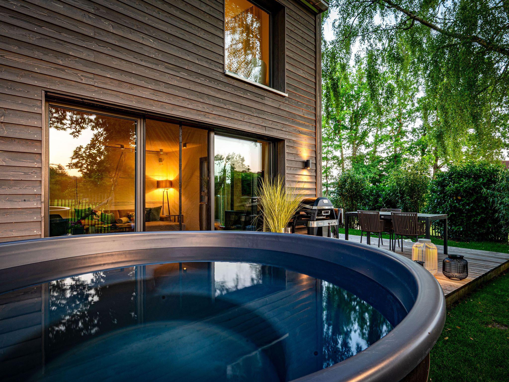 Mit Swimming-Pool, eigener Sauna, eigenem Badezuber (auch Hottub genannt – eine rustikale Form von Whirlpool), Kamin, viel Raum und Privatsphäre verfügen Sie über ein Hide-Away mit extra Wohlfühlambiente in einem modernen, nachhaltigen Holzbau.