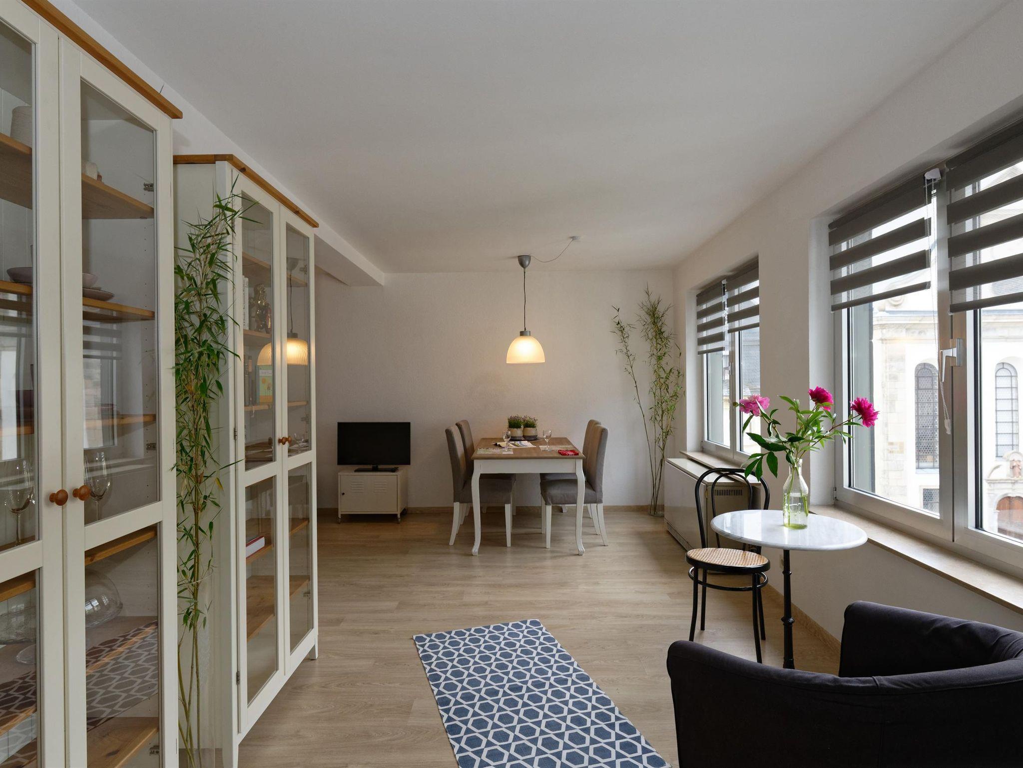 Von der Ferienwohnung mit Studio hat man einen exklusiven Blick auf den Marktplatz mit dem Löwenbrunnen, den gemütlichen Fachwerkhäusern sowie den Restaurants und Cafés.