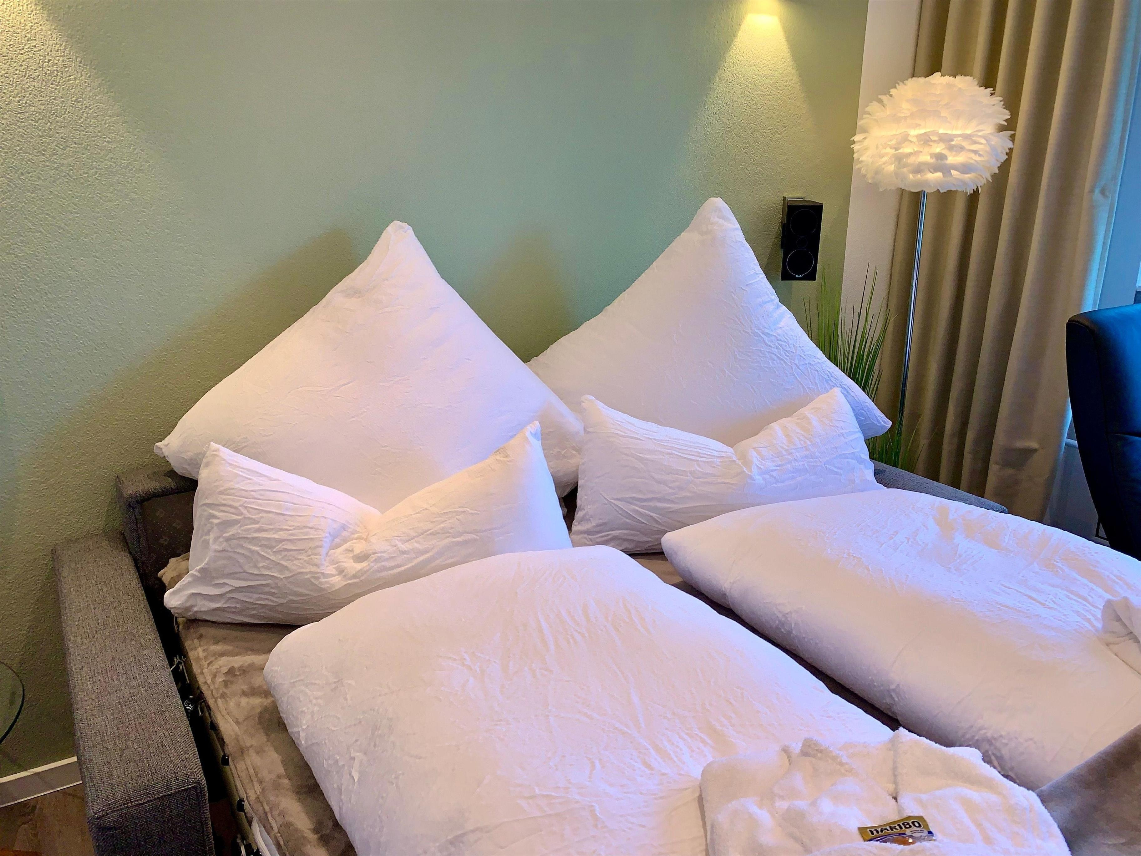 Bettwäsche, Bademäntel, Geschirr- und Handtücher stellen wir Ihnen einmalig kostenfrei zur Verfügung. Die Betten sind bei Ihrer Anreise bereits bezogen.