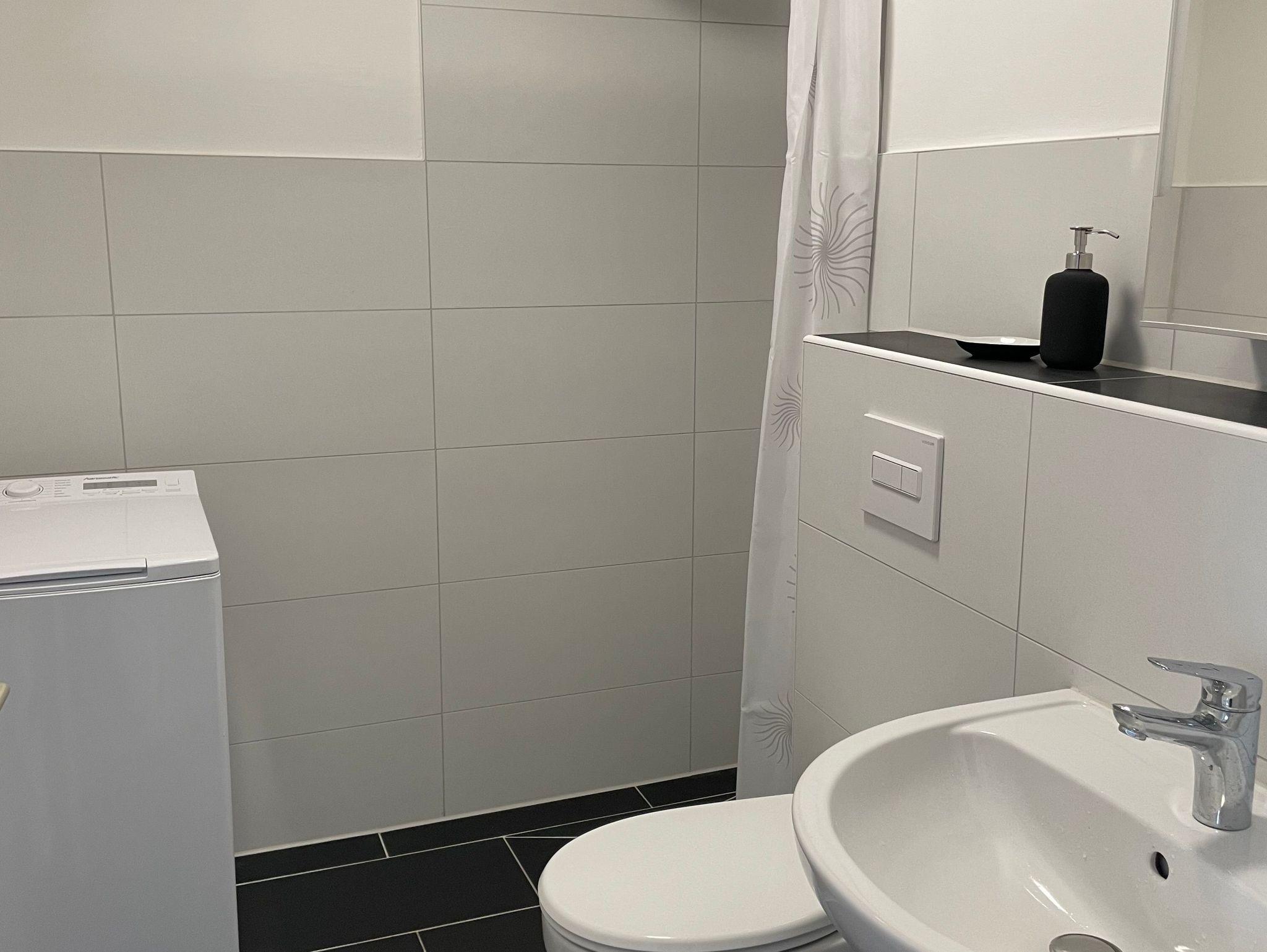 Im Duschbad befindet sich zusätzlich eine Waschmaschine.