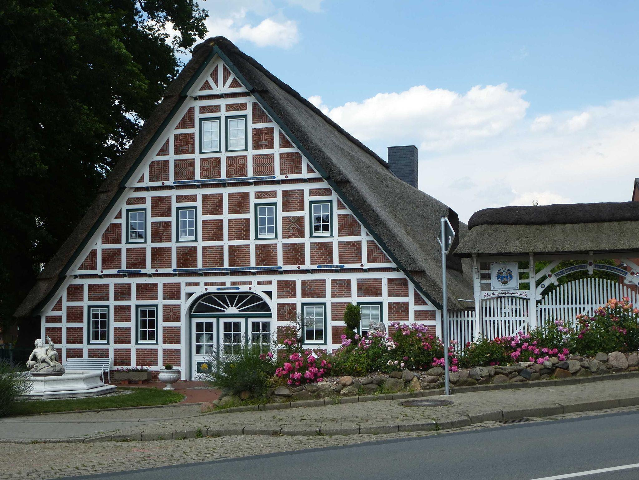 Unser Haus in Buxtehude-Hedendorf ist 1980 mit viel Holz in Fachwerkweise gebaut. Es ist ein Einfamilienhaus mit Einliegerwohnung, diese wird als Ferienwohnung genutzt. Sie ist 50 m² groß und befindet sich im oberen Stockwerk mit eigenem Eingang über eine Außentreppe. Die Fewo verfügt über einen großen Wohnraum mit gemütlicher Sitzecke und integrierter Küche mit Eßplatz sowie Schlafzimmer, Badezimmer, Balkon, Abstellraum und Garderobe.