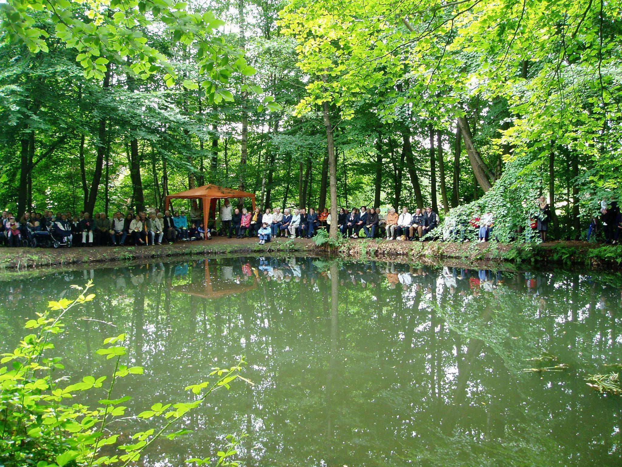 An der Grundstücksgrenze fließt ein kleiner Bach.