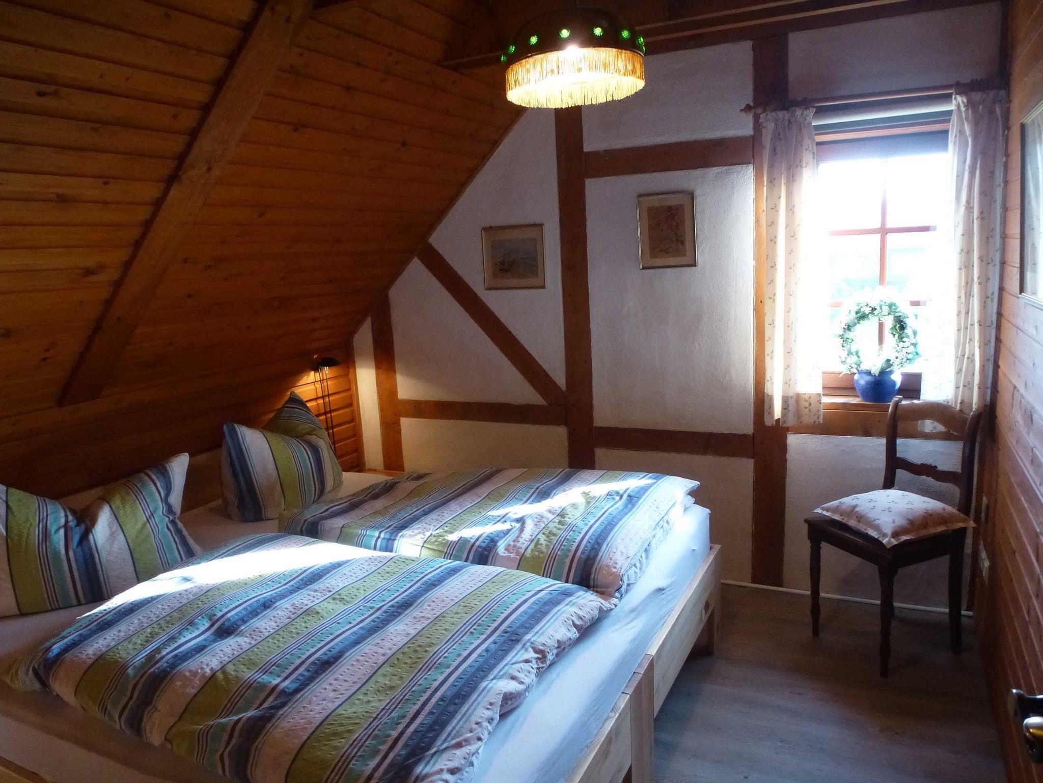 Unsere mit 3 Sternen von DTV zertifizierte Ferienwohnung mit 50 m² Wohnfläche liegt im Obergeschoß unseres Fachwerkhauses. Eine Außentreppe führt zum separaten Eingang. Die Whg. ist mit sichtbaren Deckenbalken, Fachwerk und hellen holzvertäfelten Innenwänden gebaut. Angenehme Wärme erwartet Sie durch Fußbodenheizung in allen Räumen. Der Fußboden besteht aus Vinyl-Beplankung.