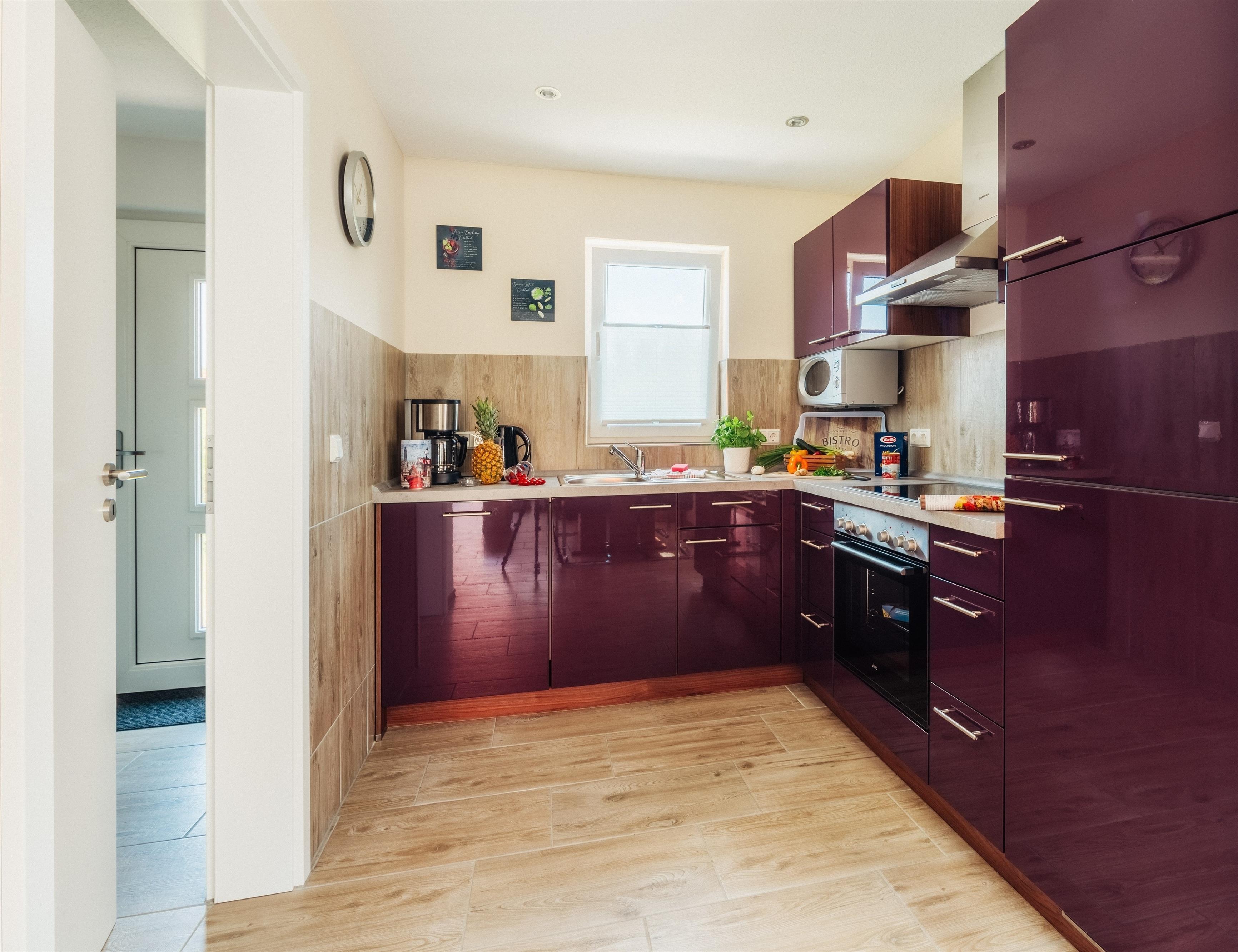 1 moderne vollausgestattete Küche mit Geschirrspüler, Mikrowelle, E-Herd (Ceran) mit Backofen, Kühl-/ Gefrierkombination, Toaster, Kaffeemaschine, Mikrowelle u.v.m.