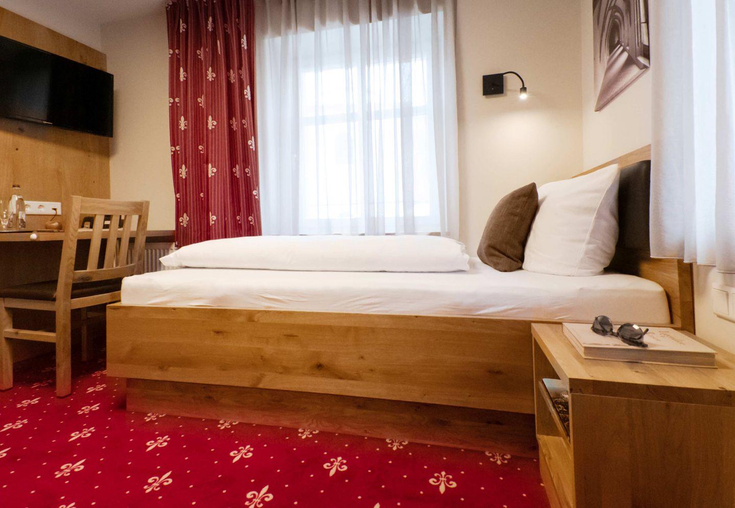 Das Einzelzimmer ist allergikerfreundlich und als Nichtraucherzimmer ausgewiesen. Für Ihre Komfortansprüche wurde auf eine gehobene Grundausstattung Wert gelegt: Sie schlafen in einem bequemen Bett und profitieren von frischer Bettwäsche sowie ausreichend Hand- und Badetüchern. Teppichboden sorgt für eine behagliche Atmosphäre. Ein Schreibtisch mit Spiegel sowie eine Garderobe stehen Ihnen zur Verfügung und unterstützen auch längere Aufenthalte oder flexibles Arbeiten.