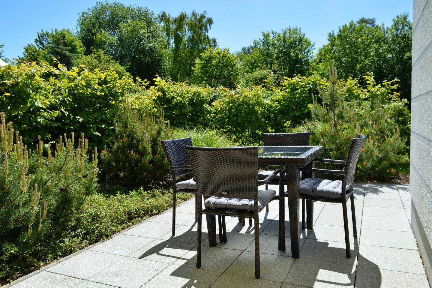 Die Ferienwohnung 04 in der "Residenz von Flotow" in Heiligendamm ist eine großzügige 52 m² große 2-Zimmer-Wohnung für bis zu 4 Personen. Die Wohnung liegt im Erdgeschoss auf der Südostseite des Hauses und verfügt über eine Terrasse, die Sonnenstunden garantiert. Das Haus verfügt über WLAN, einen Fahrstuhl und einen Fahrradraum.