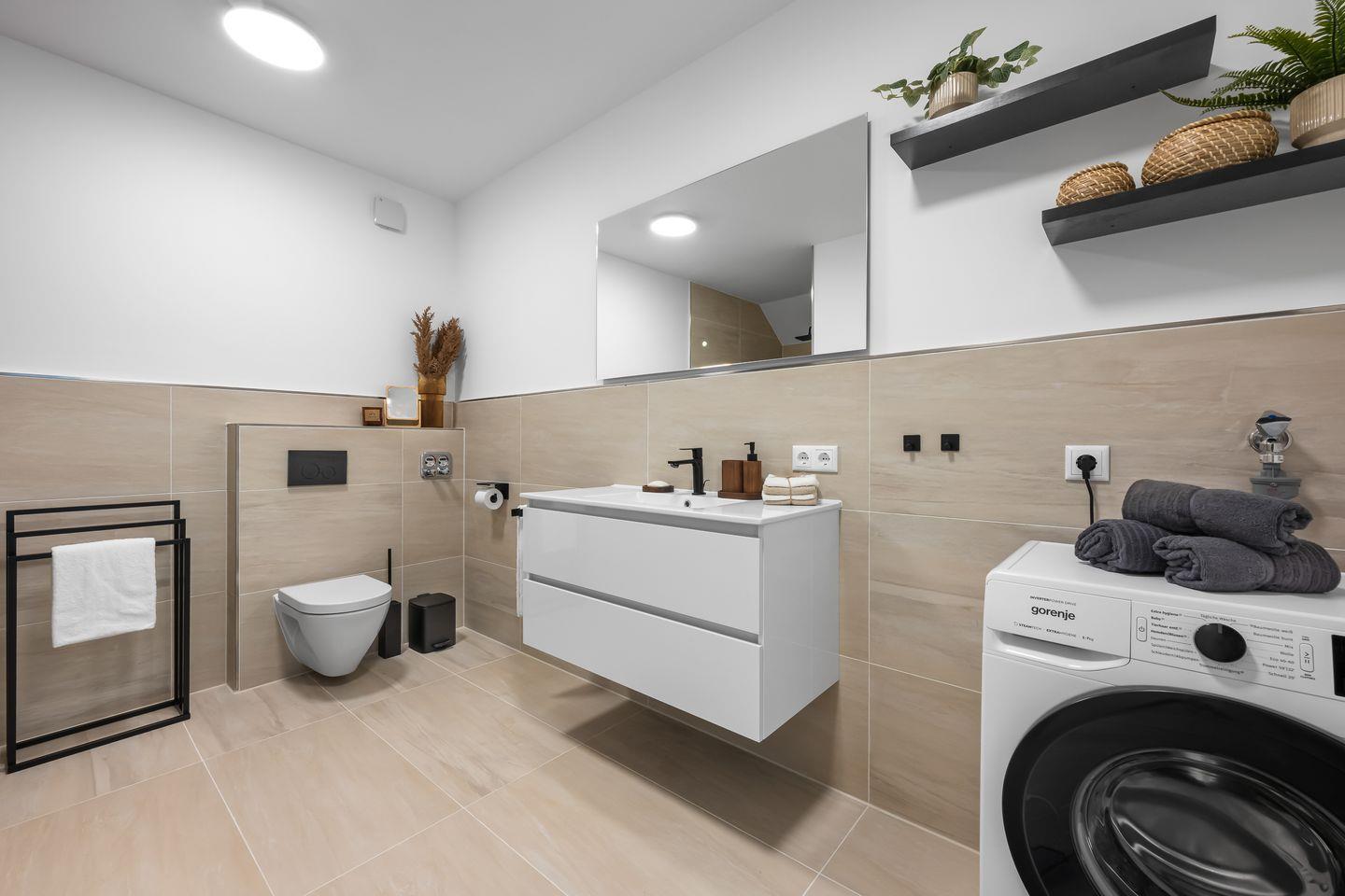 Zusätzliche Annehmlichkeiten der Wohnung umfassen eine Fußbodenheizung, die für wohlige Wärme auch in den kühleren Monaten sorgt, sowie eine Waschmaschine, die Ihnen die Möglichkeit gibt, die eigene Wäsche bequem zu reinigen. Der Privatparkplatz im Hinterhof sorgt dafür, dass Sie während Ihres Aufenthalts stressfrei Ihr Fahrzeug abstellen können. Die Wohnung betreten Sie durch einen eigenen Hauseingang (kein Treppenhaus).