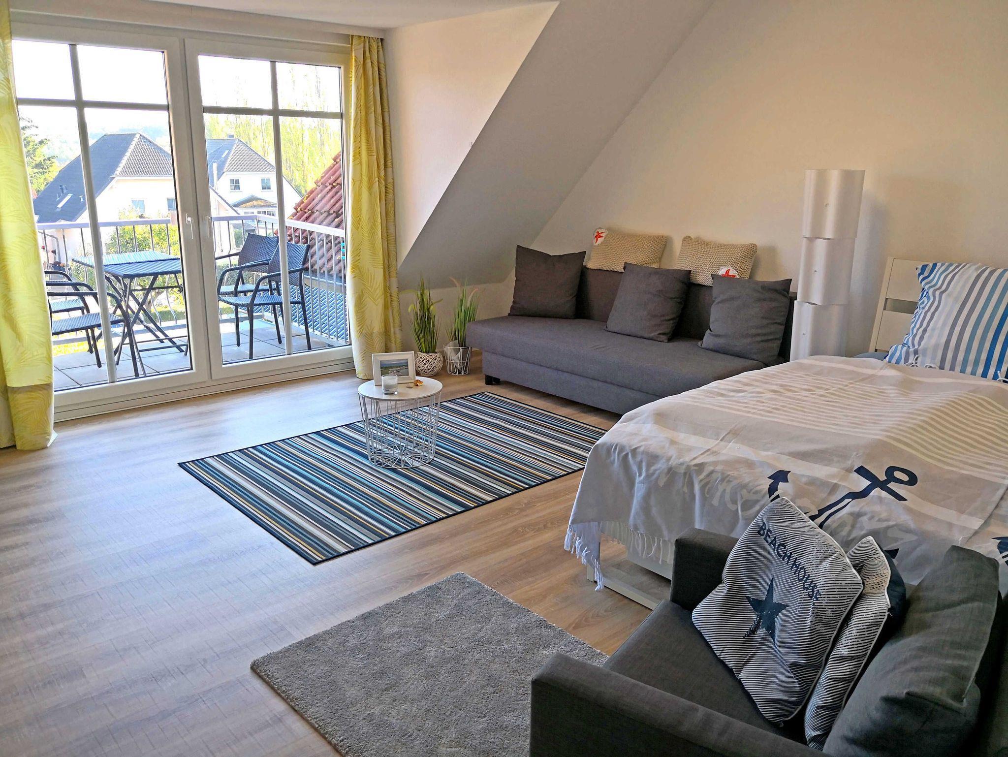 Die komfortabel und modern ausgestattete 2-Zimmer-Ferienwohnung mit separater Küche und Dusch- Wannenbad verfügt über zwei Zimmer, welche sich beide als Wohn- und Schlafzimmer nutzen lassen. Beide Zimmer verfügen jeweils über Doppelbetten und eine Schlafcouch sowie Flachbildfernseher. Die Wohnung ist somit ideal geeignet für zwei Paare oder Familien mit Kindern. Der sonnige, möblierte Balkon mit unverbautem Blick ist von einem der beiden Zimmer begehbar. Ein Tiefgaragenstellplatz und ein Fahrradkeller gehören zur Wohnung.