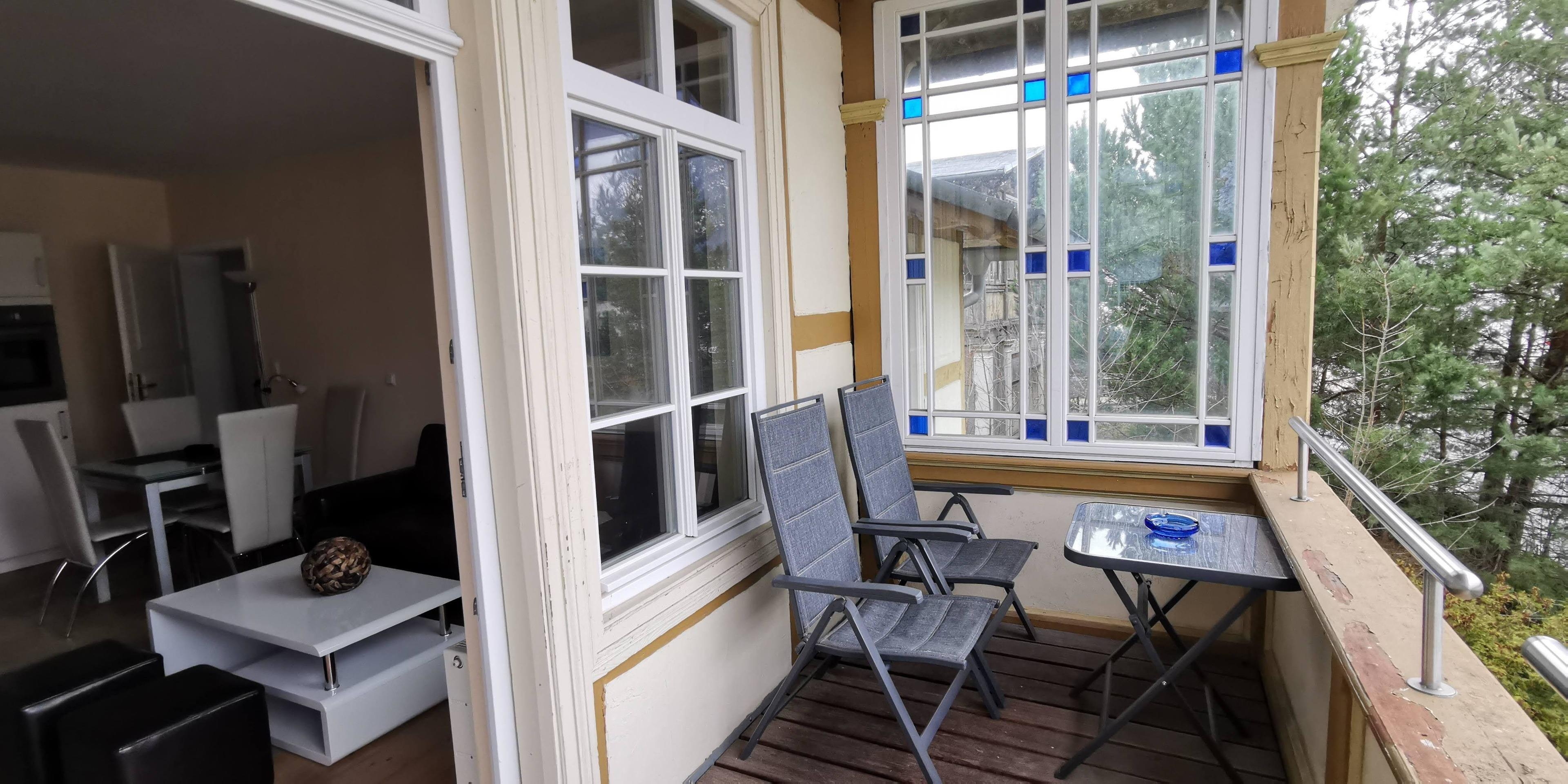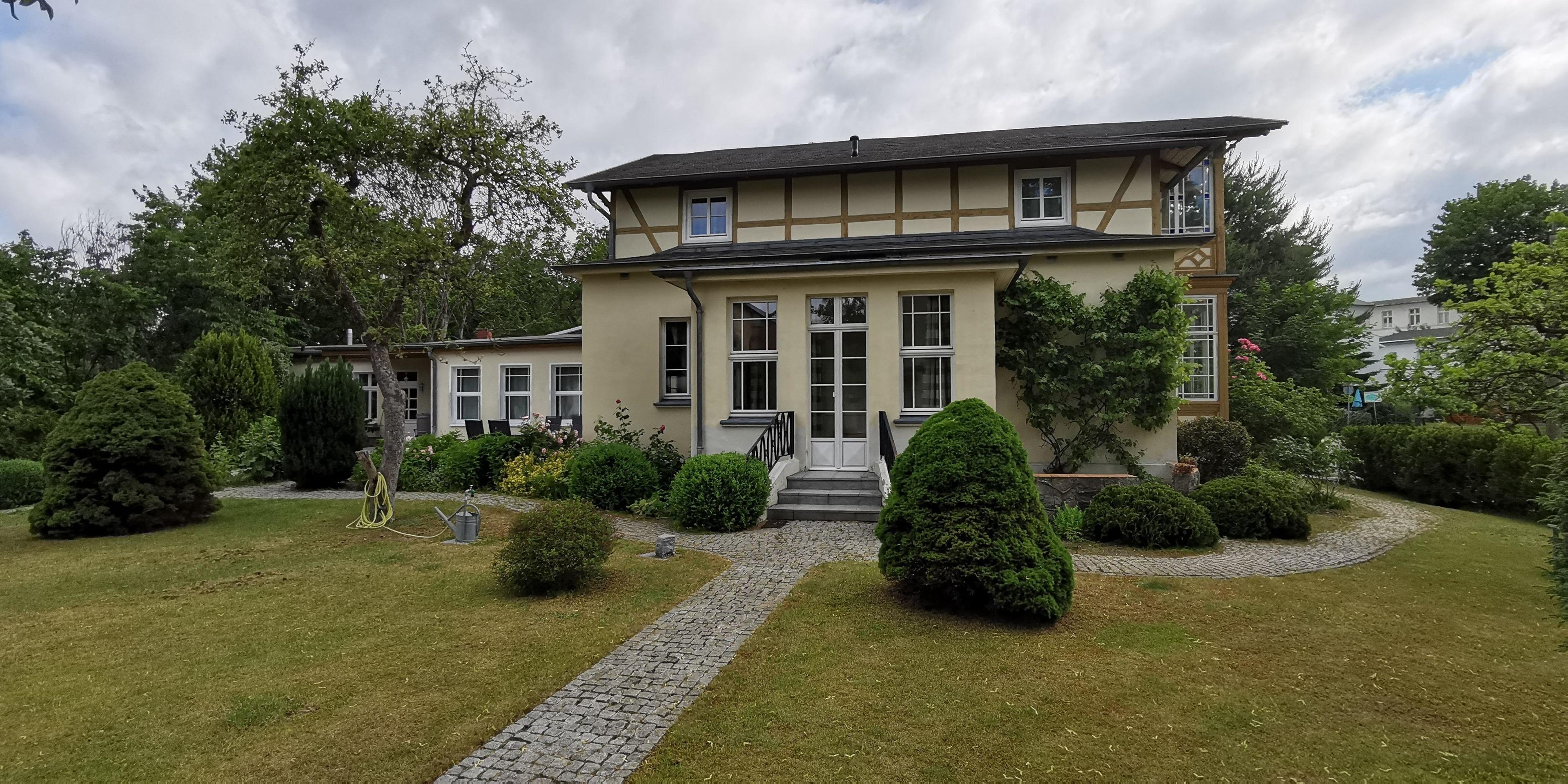 Sie gelangen durch eine kleine Treppe in der liebevoll sanierten Villa ins Obergeschoß, wo Sie Ihre 52qm große Ferienwohnung mit einem kleinen, gemütlichen Schlafzimmer mit einem 140 cm breiten Doppelbett und einem hellen Wohnzimmer finden werden.