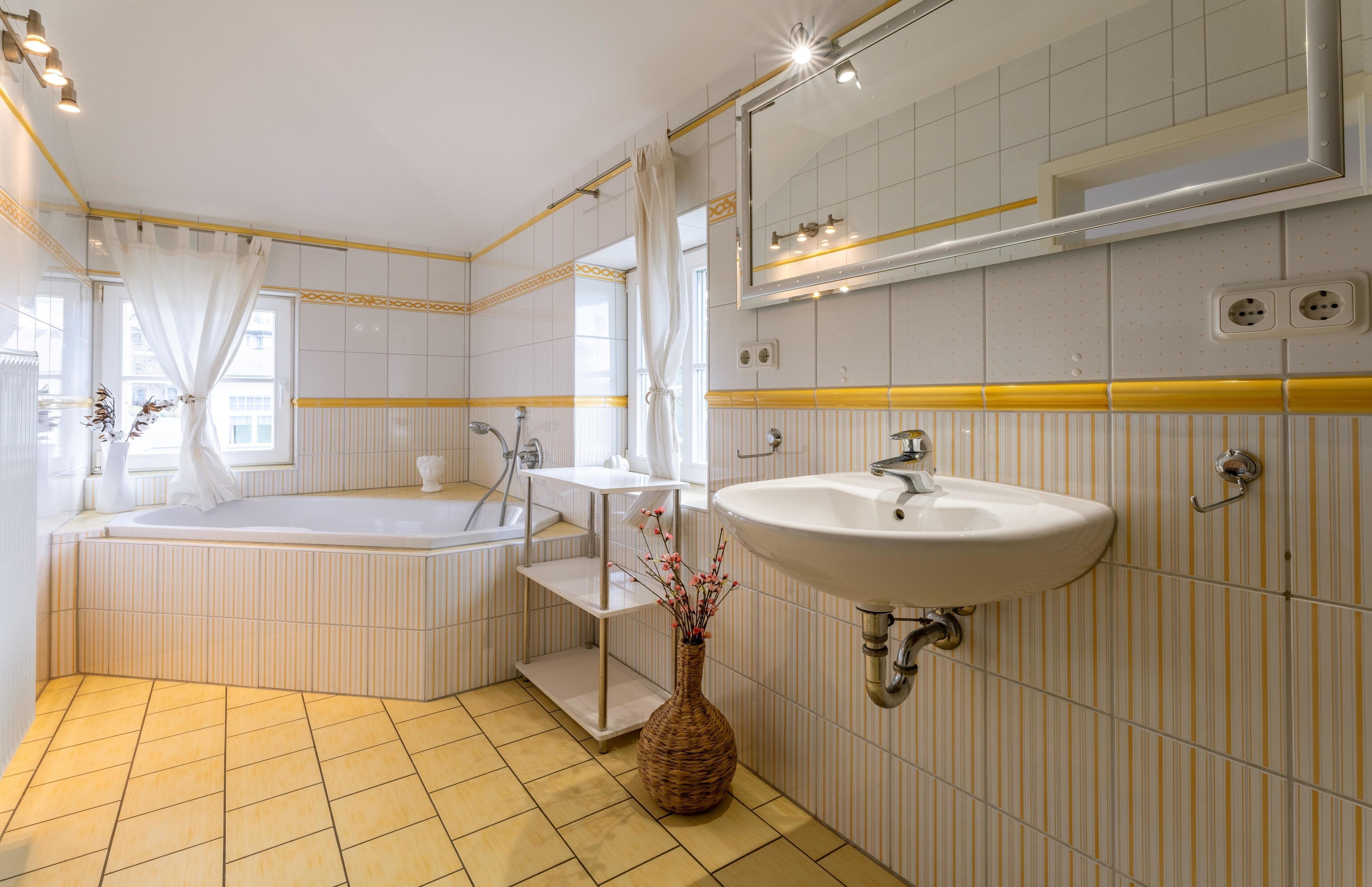 Kommen Sie vom Tag erschöpft zurück, wartet schon eine heiße Dusche oder auch eine kleine Auszeit in der großzügigen Badewanne auf Sie. Wie wäre es zum Ausklang eines romantischen Abends mit einem Glas Wein am kleinen Bio-Kamin?