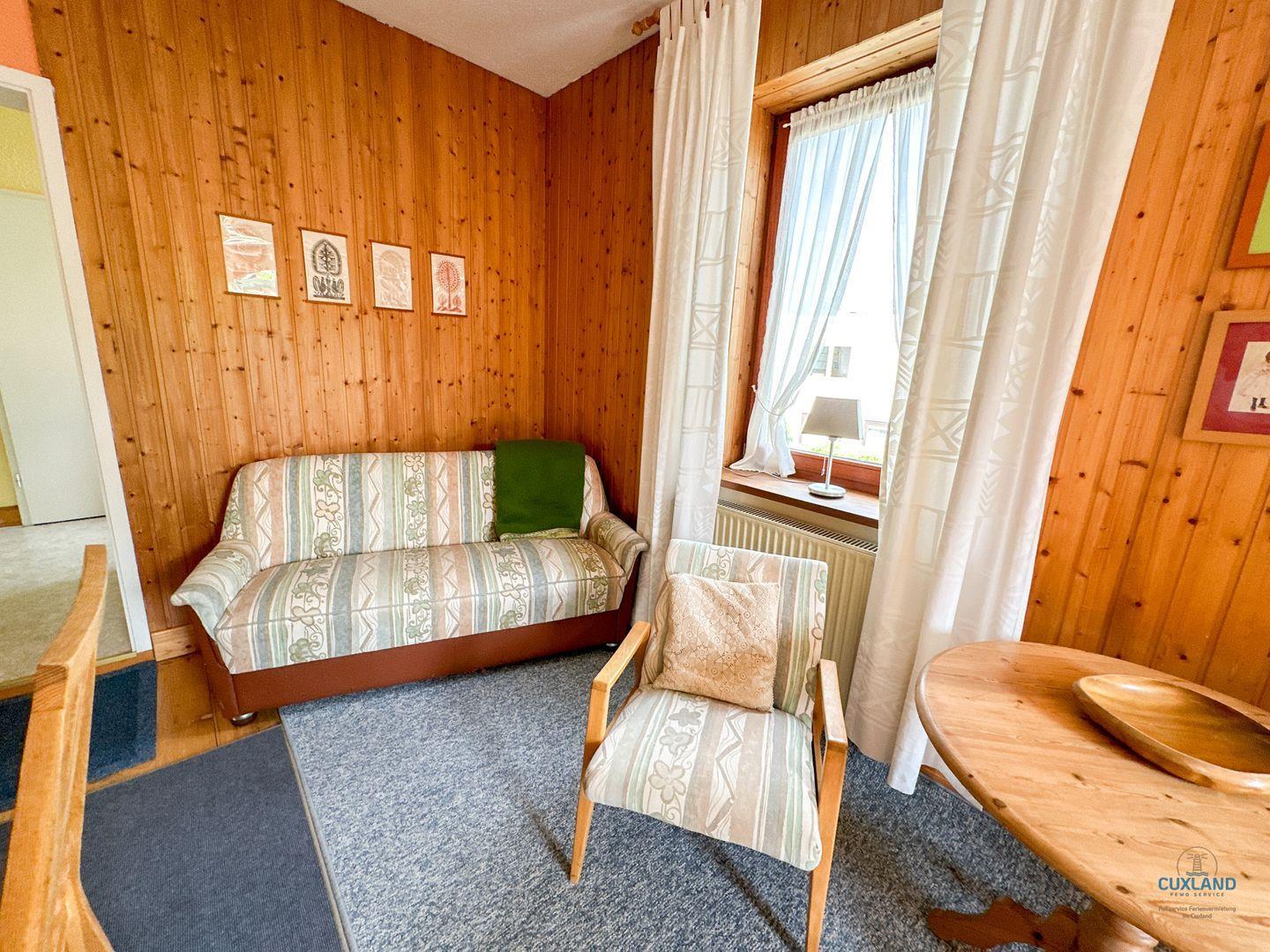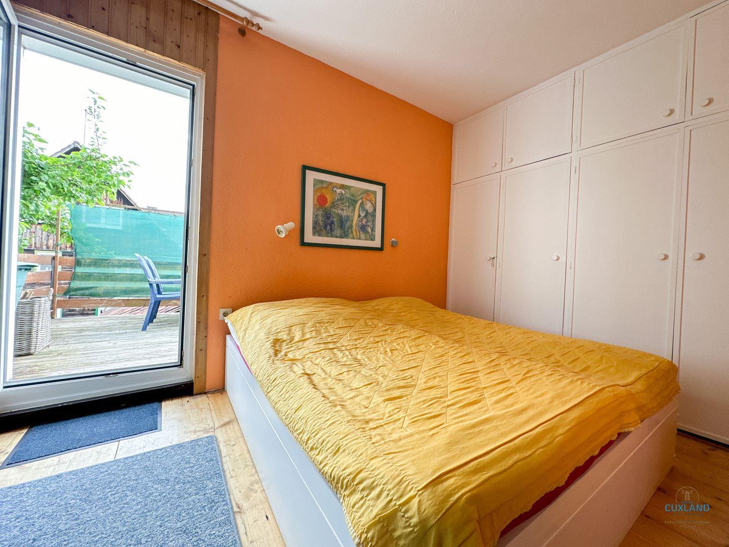 Die Wohnung bietet zudem großzügige Wohnräume, die durch ihre hohen Decken und großen Fenster ein helles und luftiges Ambiente schaffen. Macht es euch im gemütlichen Schlafzimmer bequem, oder nutzt den Schlafbereich im Wohnraum. Im Garten hinter dem Haus steht euch ein Garten mit Grillplatz zur Verfügung. Fahrräder können im dort ebenfalls vorhandenen Gartnhaus sicher abgestellt werden.