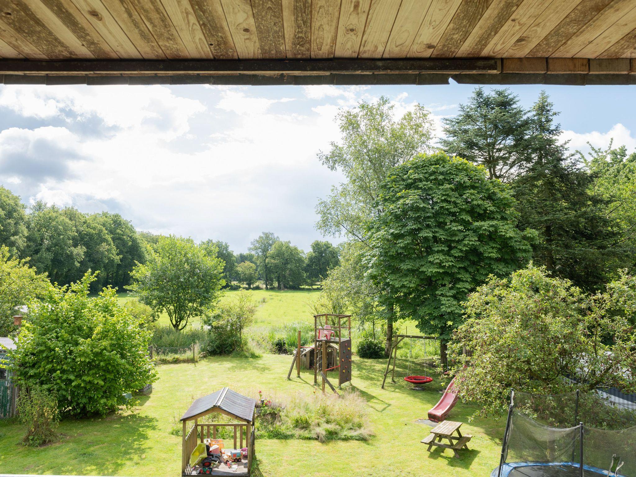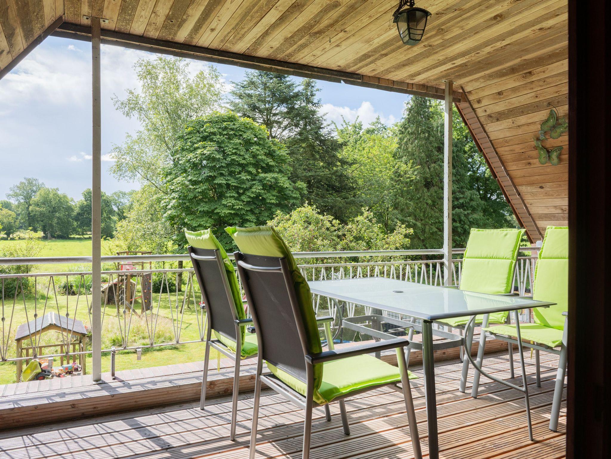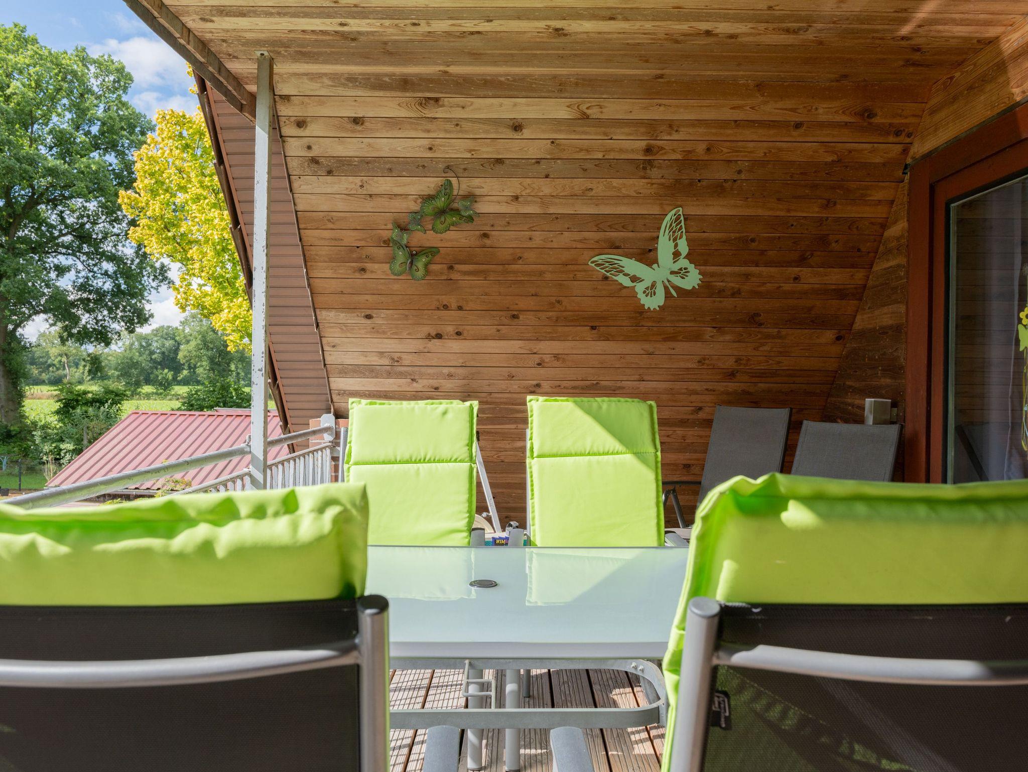 Vom Wohnbereich aus geht es auf die Loggia, ausgestattet mit einem Glastisch und 6 Alustühlen und einem Elektrogrill. Die Auflagen sind im Wohnbereich hinter der Kommode in einer Auflagenbox verstaut. Von der Loggia aus, haben Sie auch einen Blick in unseren Garten, wo sich Ihre Kinder an den dort zur Verfügung stehenden Spielgeräten aufhalten können.