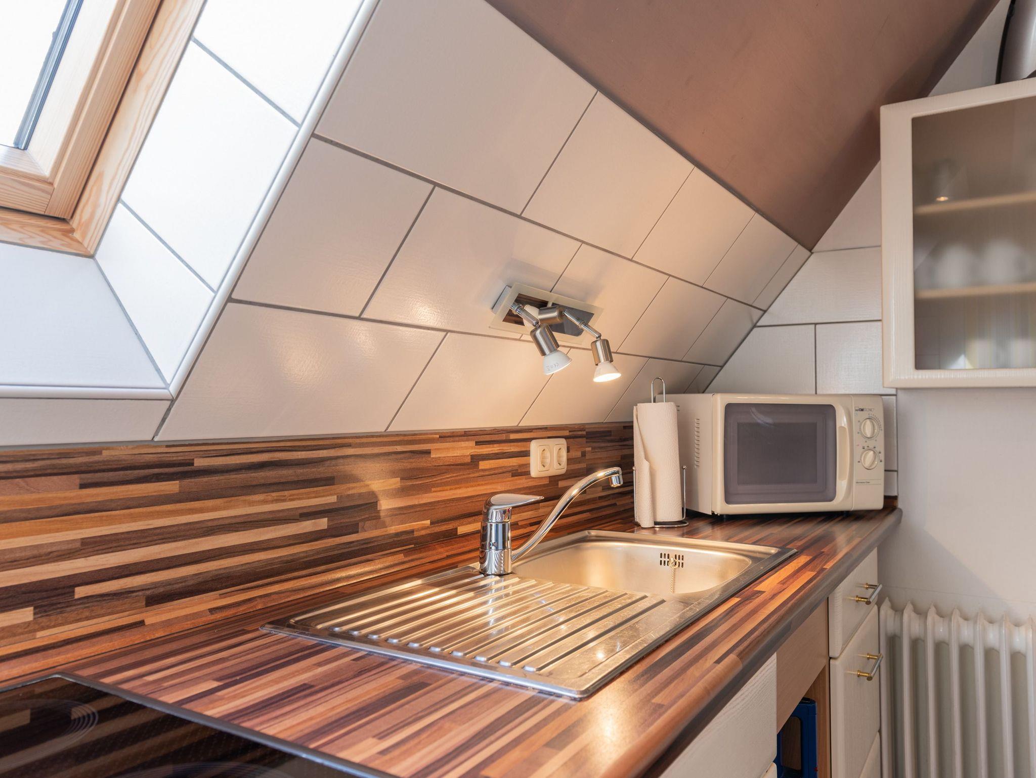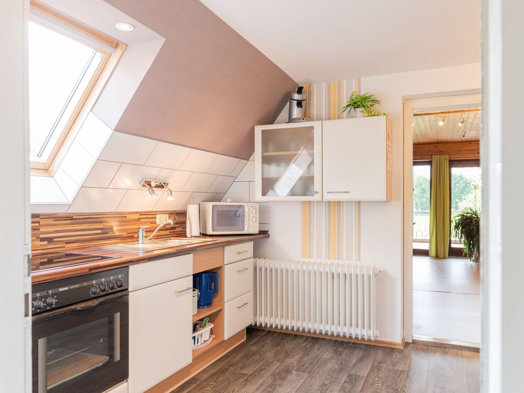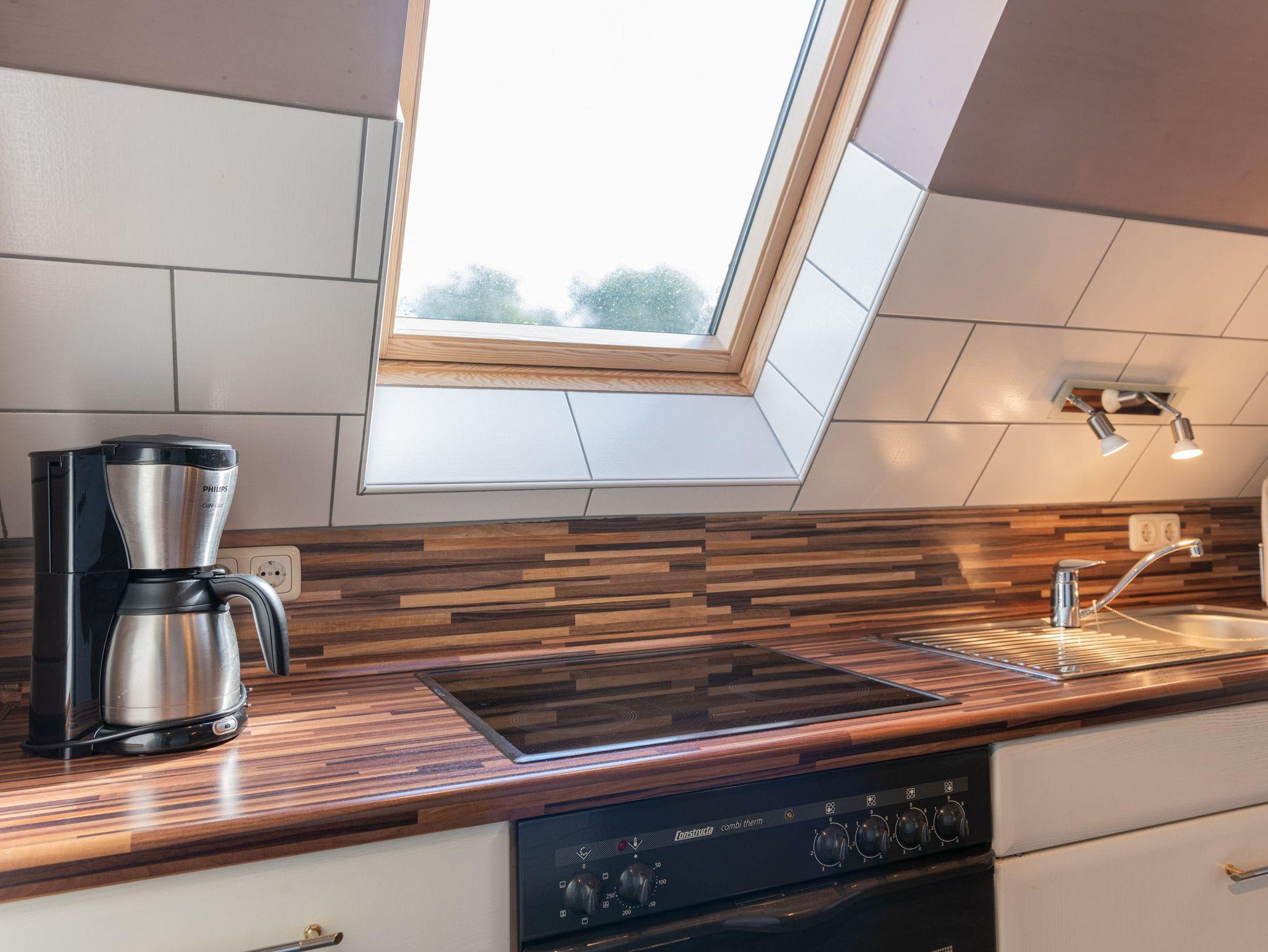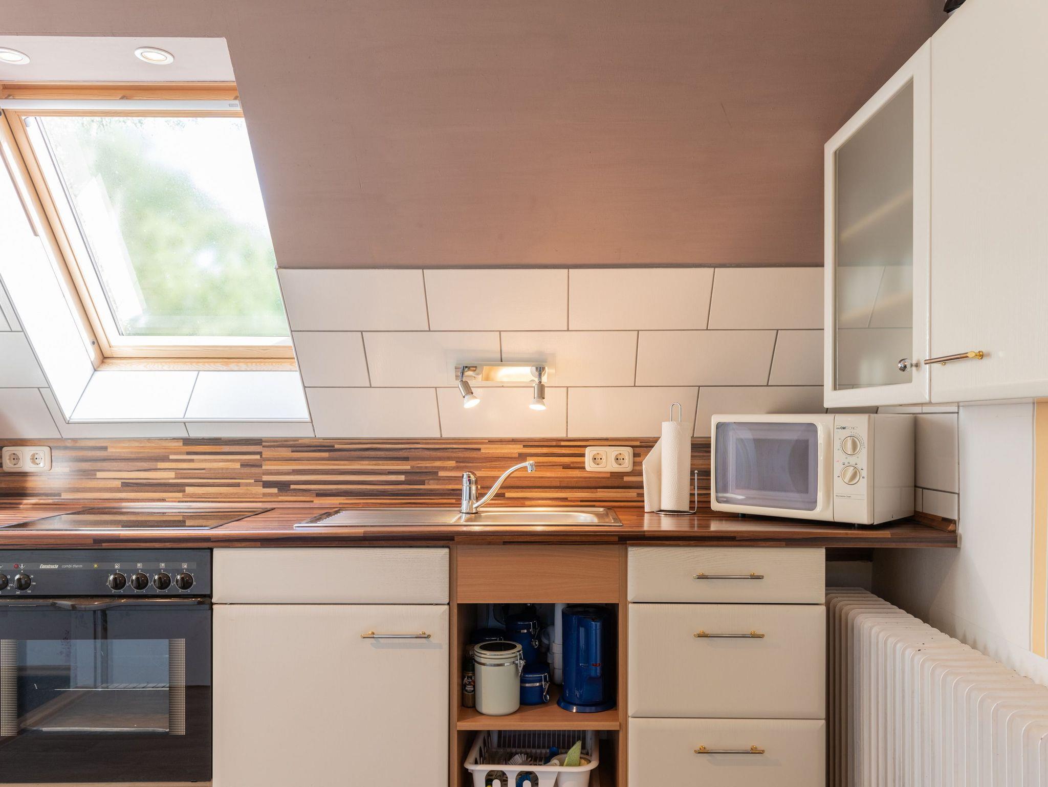 Komplett eingerichtete Küchenzeile inkl. Backofen, Kaffeemaschine, Senseo, Mikrowelle und Raclette.