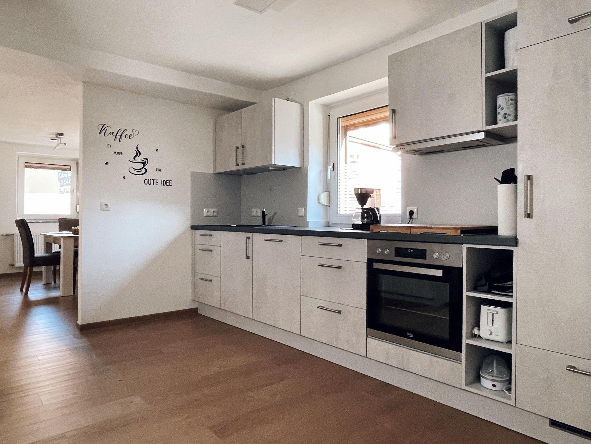 Die ca 70 m2-Wohnung liegt im Erdgeschoss und verfügt über ein Wohnzimmer mit Kabel- und Internet-TV, 1 Schlafzimmer mit Doppelbett, hochwertige Einbauküche mit Induktionsherd und Backofen, Spülmaschine, Kühl/Gefrierschrank und einem separaten Ess/Spielzimmer. Freies WLAN, Bettwäsche, Handtücher und Haartrockner sind selbstverständlich. Separate Waschmaschine und Trockner können bei Bedarf genutzt werden. Eine gemütliche Sitzecke mit Grillmöglichkeit steht sowohl im Hof als auch im Garten zur Verfügung. Ein Parkplatz und eine abschließbare Garage für Fahrräder/Motorräder sind vorhanden.
