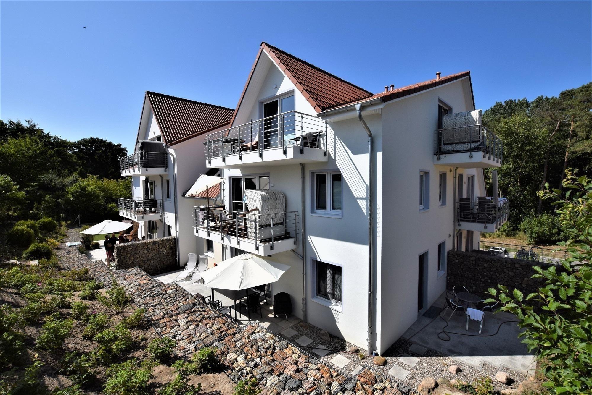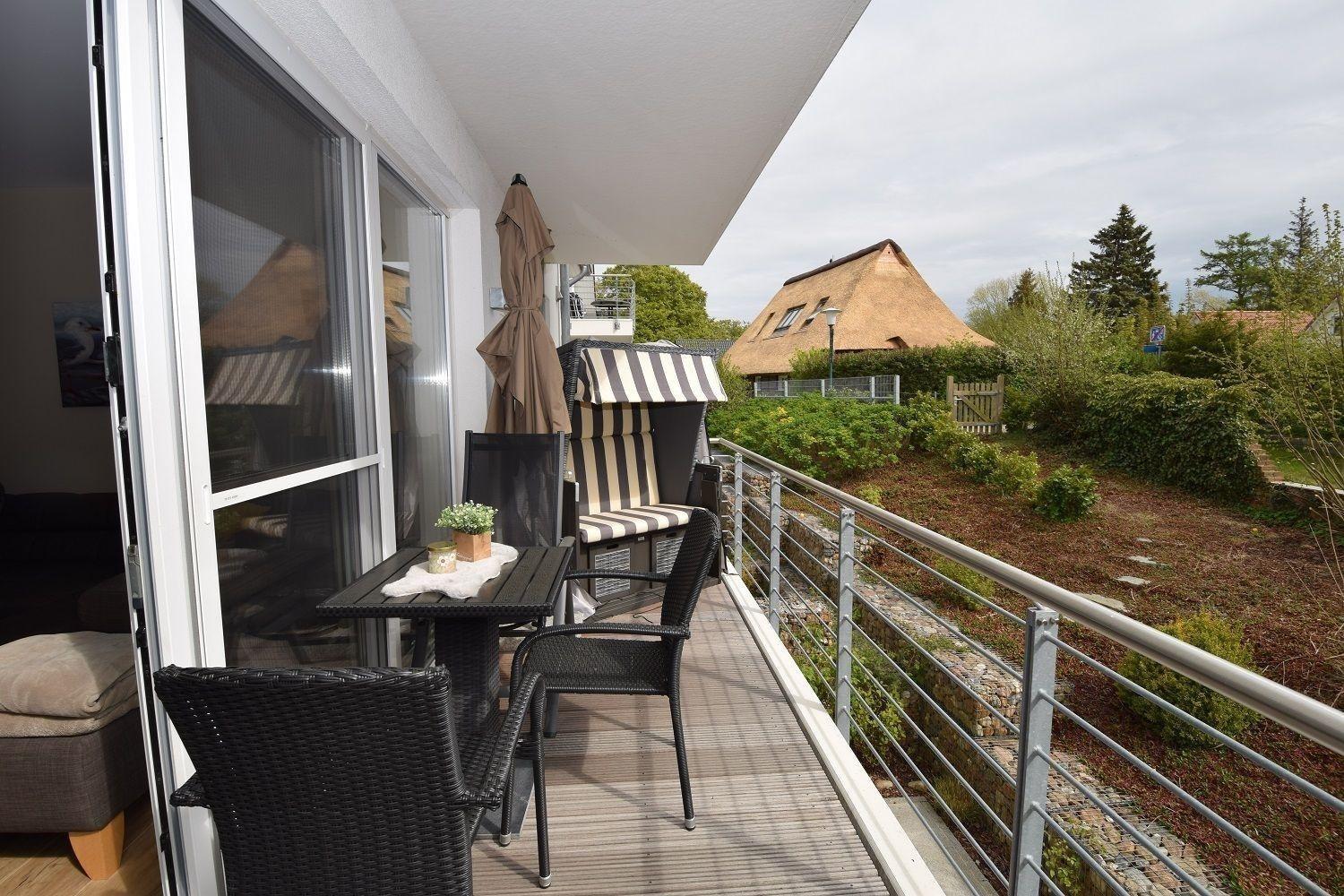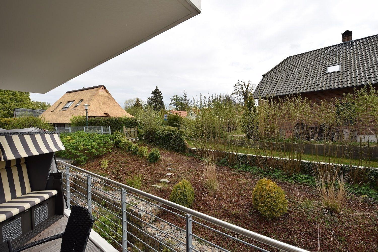 Der Außenbereich ist gemeinschaftlich nutzbar, was die Gelegenheit bietet, andere Gäste zu treffen und die Umgebung gemeinsam zu genießen. Ob beim Sonnenbaden auf dem Balkon oder beim Entspannen im Strandkorb – der Außenbereich der Ferienwohnung "Auszeit" trägt maßgeblich zu einem unvergesslichen Urlaubserlebnis bei. Die zentrale und ruhige Lage ermöglicht zudem einen schnellen Zugang zum Strand und weiteren Freizeitmöglichkeiten.