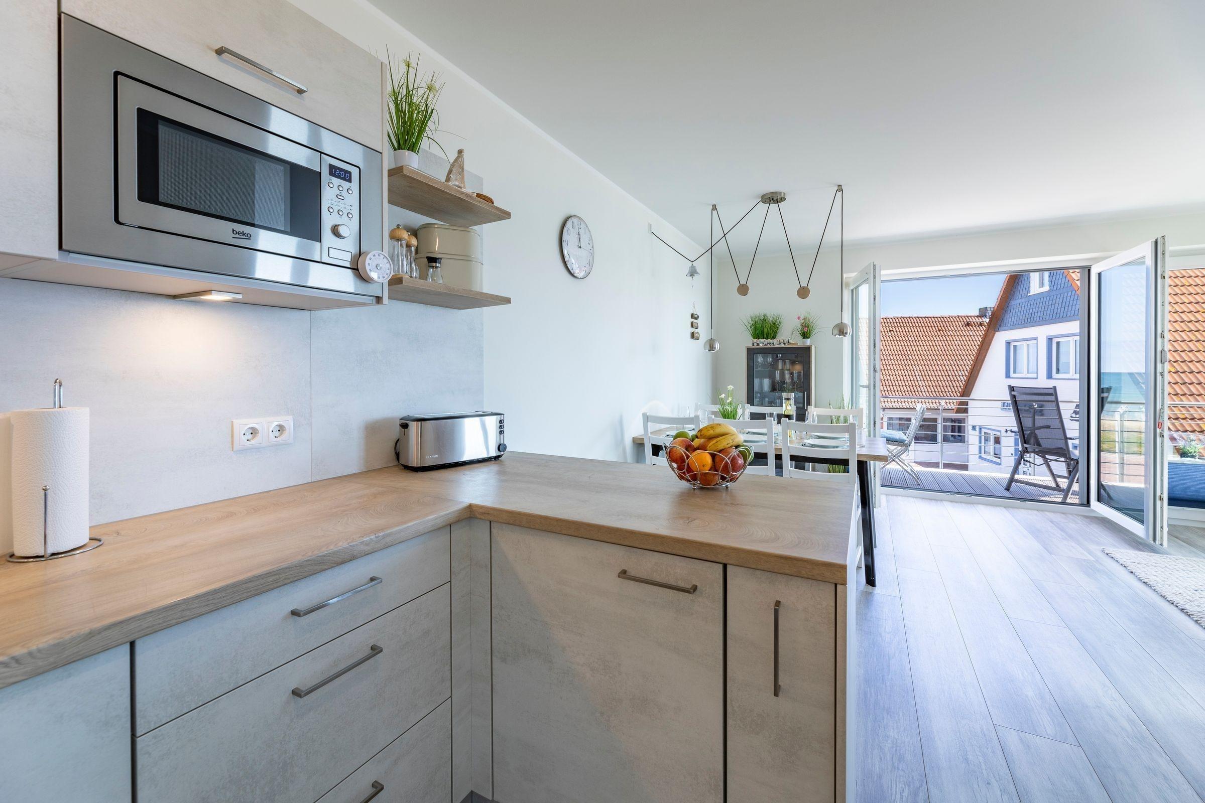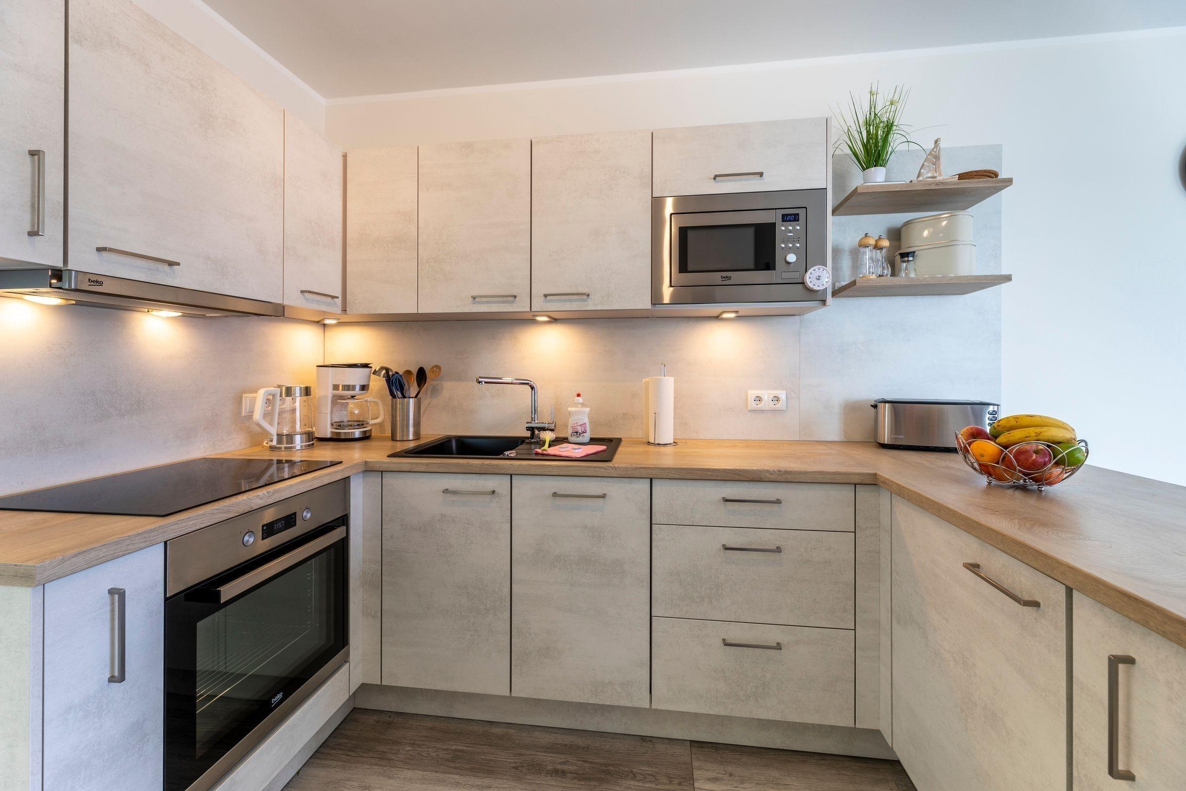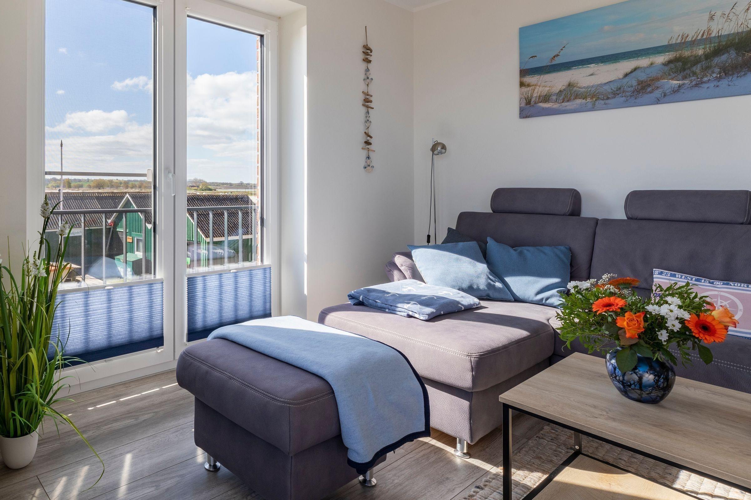 Die moderne Ferienwohnung „Emmas Kajüte“ bietet auf 73 qm Platz für 4 bis 6 Personen. Im ersten Obergeschoss gelegen, sind die lichtdurchfluteten Schlafzimmer mit Doppelbetten und ausreichend Stauraum ausgestattet, während das großzügige Wohnzimmer direkten Zugang zu einem möblierten Balkon hat. Eine offene, voll ausgestattete Küche mit Geschirrspüler, Induktionsherd, Mikrowelle, Kaffeemaschine und Kühlschrank sorgt für kulinarischen Komfort. Das Vollbad bietet moderne Annehmlichkeiten wie Dusche und WC. Der Hauswirtschaftsraum verfügt über eine Waschmaschine zur alleinigen Nutzung. WLAN ist kostenlos verfügbar. Diese Ferienwohnung befindet sich in einer Anlage, die einen Fahrstuhl sowie Fahrradabstellplätze im Nebenhaus bietet. Ein Stellplatz für 1 PKW ist ebenfalls vorhanden.