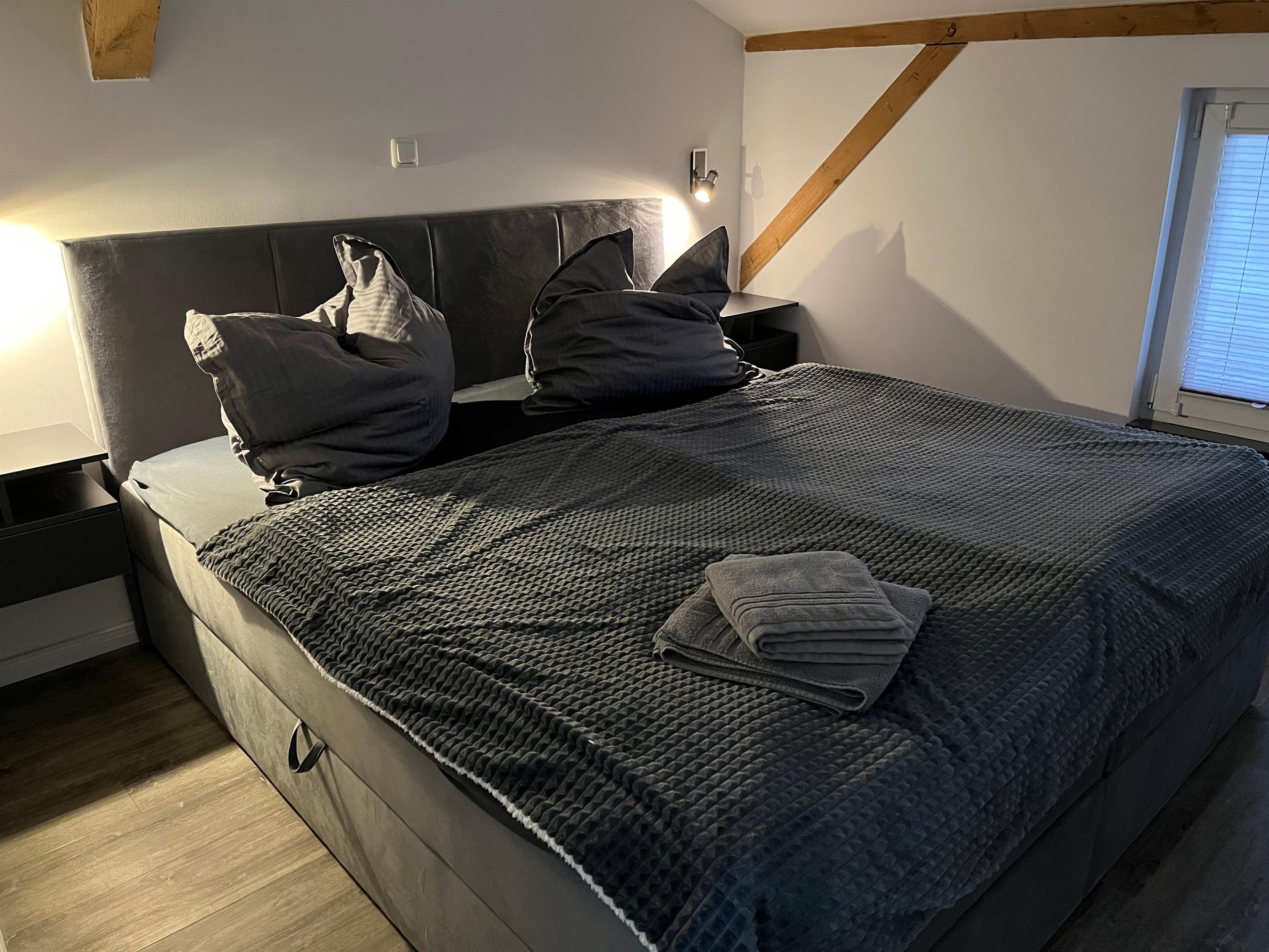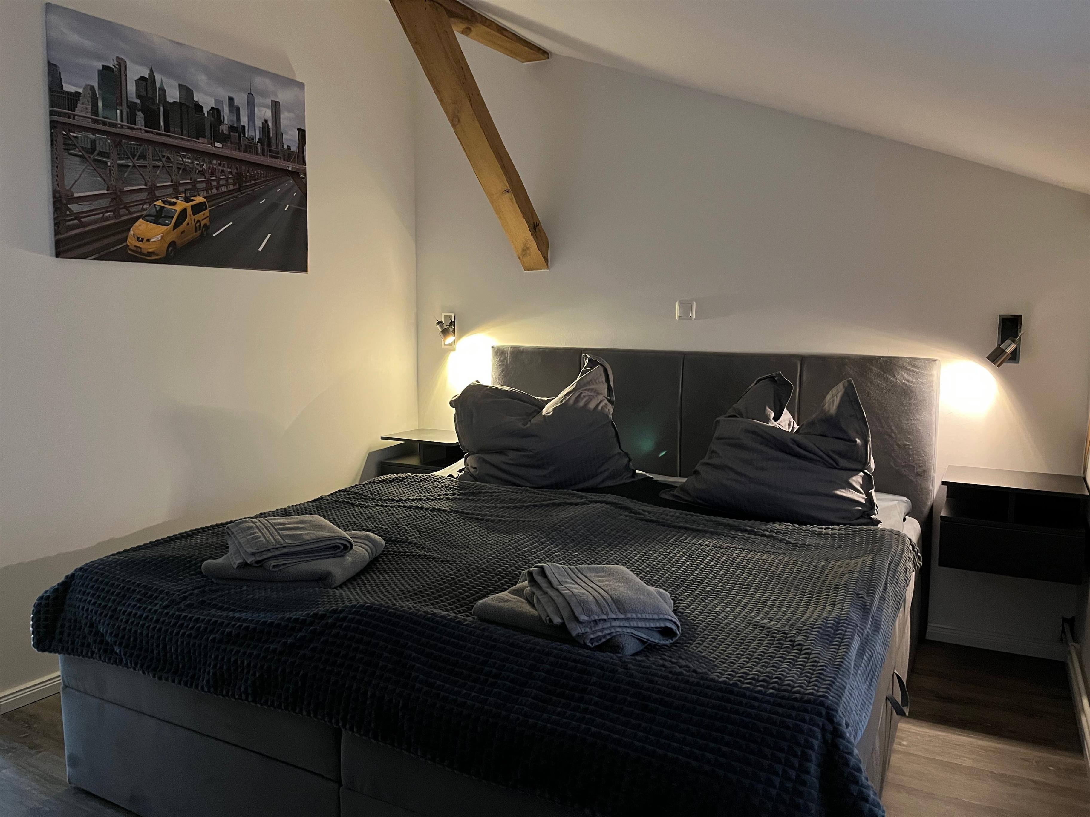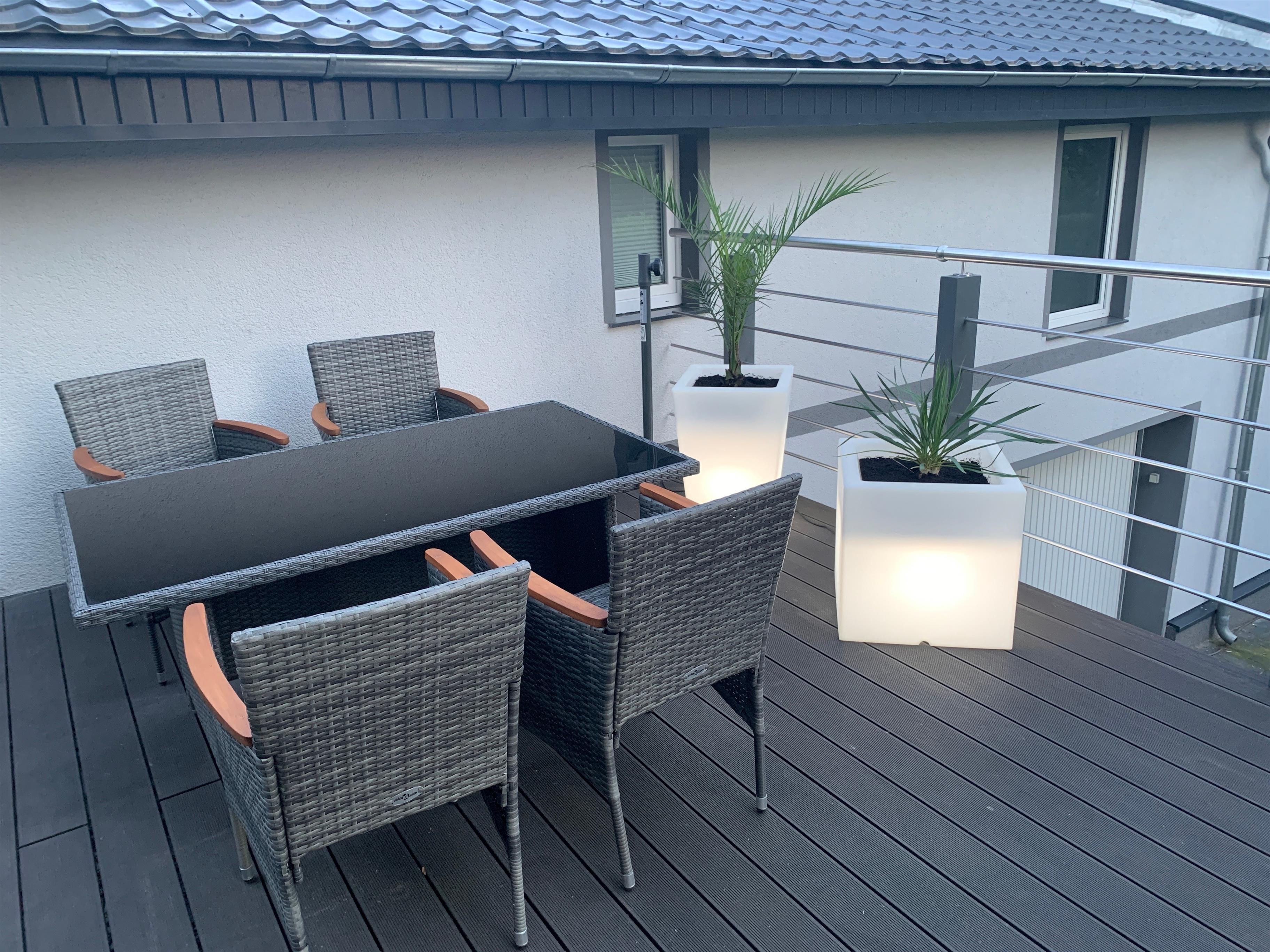 Unsere ca. 80 qm modern eingerichtete und komfortable Ferienwohnung bietet Platz für 6 Personen und liegt im Dachgeschoss eines Zweifamilienhauses mit separatem Eingang und Terrasse.