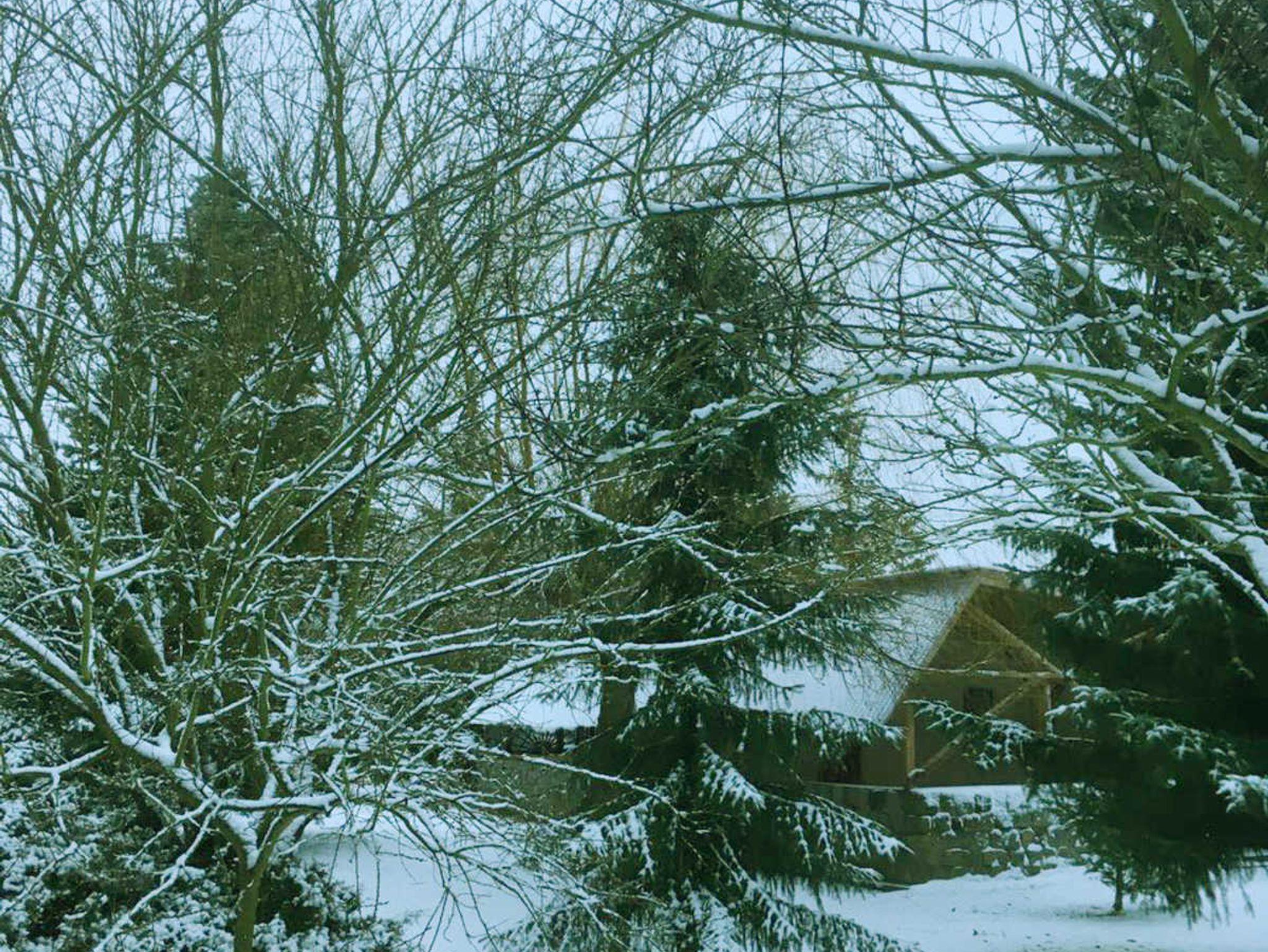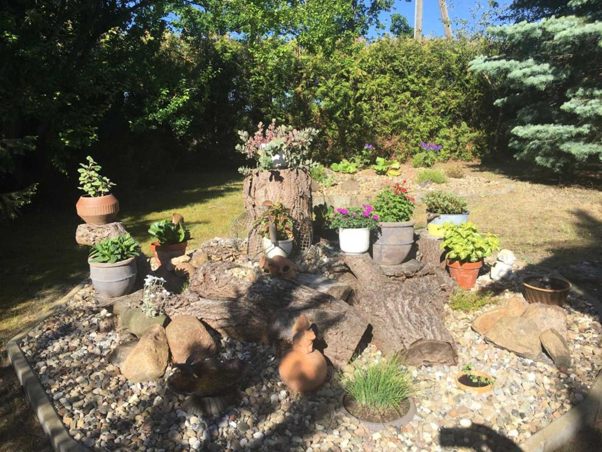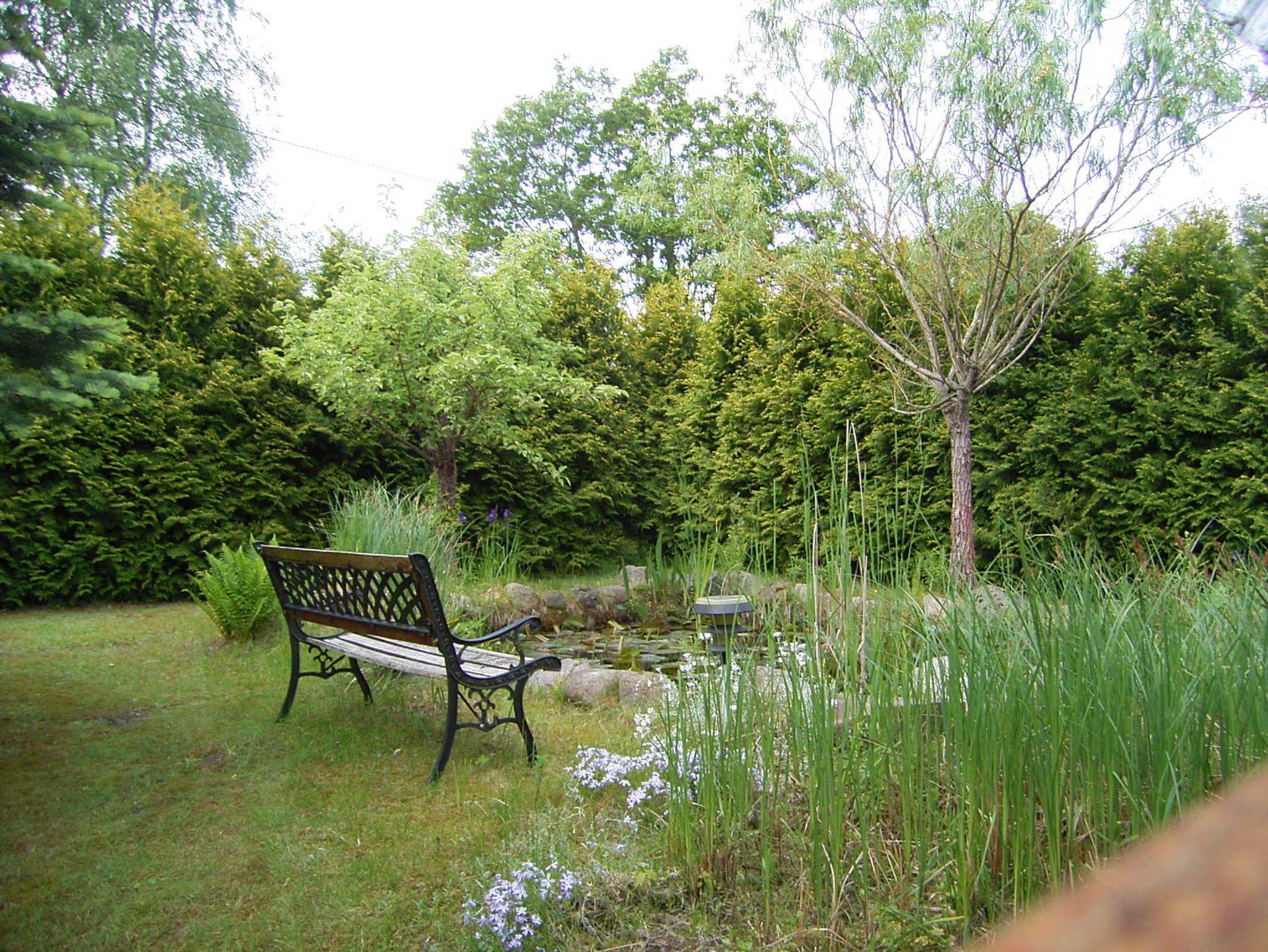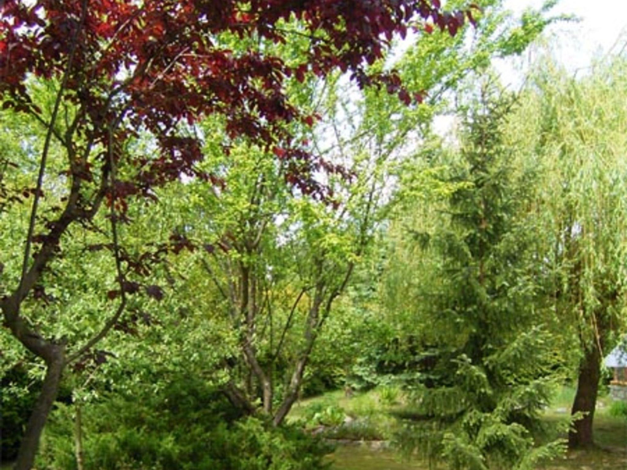 In der Nähe eines Bahnübergangs idyllisch am Waldrand gelegener, modern eingerichteter Bungalow, in großer gepflegter Gartenanlage (5000 m²), durch Hecken und Gebüsch vom Haupthaus abgegrenzt, in dem der Eigentümer wohnt.