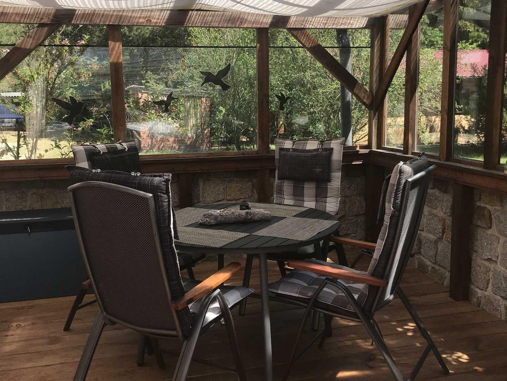 Wohnraum und separates Schlafzimmer mit Doppelbett, überdachte möblierte Terrasse mit gemütlicher Hängematte und Grillmöglichkeit (Elektrogrill). Carport-Stellplatz beim Haus...