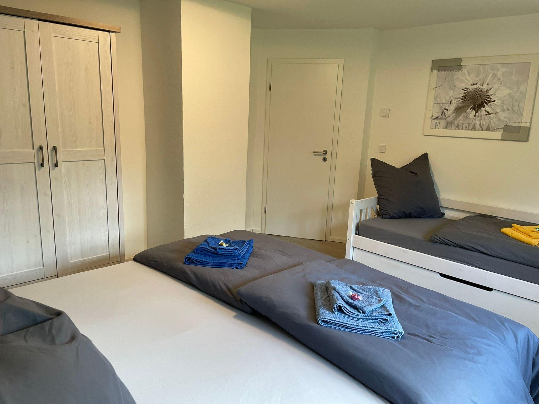 Das kleinere Schlafzimmer verfügt über ein Doppelbett und einen Schrank. Die beiden anderen Zimmer sind jeweils mit einem Doppelbett und einem Ausziehbett ausgestattet. Außerdem befindet sich in allen Schlafzimmern ein Smart TV.