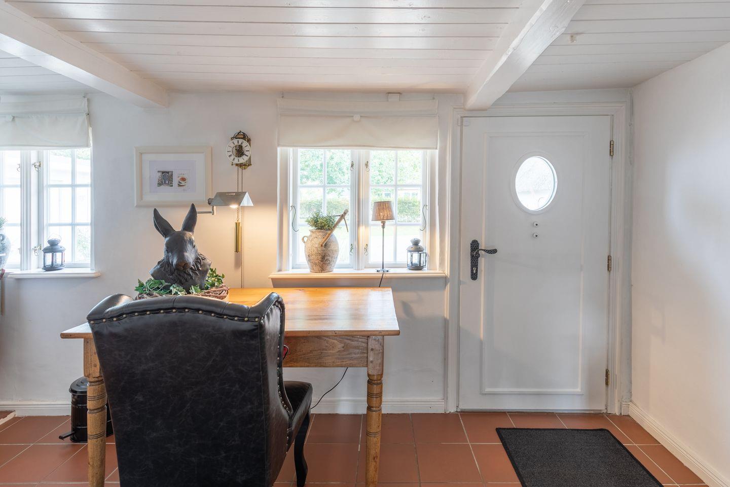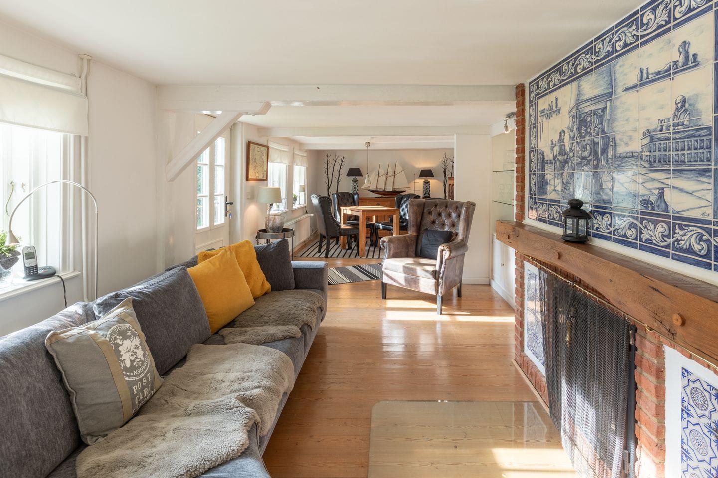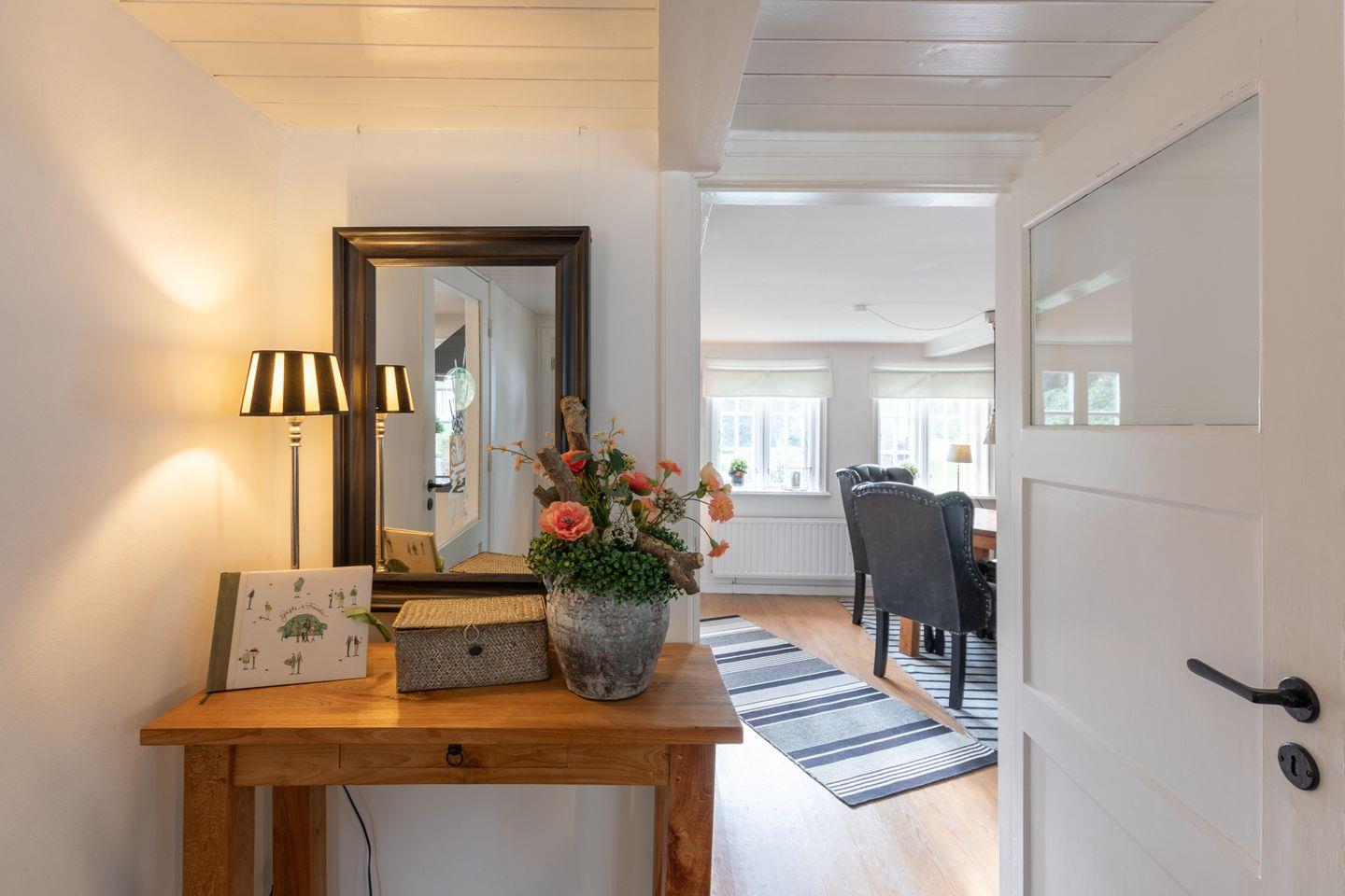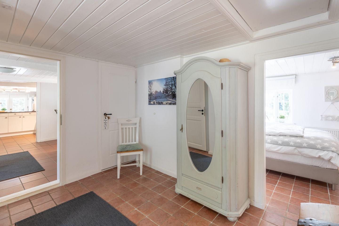 Exklusives Landhaus für bis zu 6 Personen in Humptrup. 160 qm, 3 Schlafzimmer mit Boxspringbetten, gut ausgestattete Küche, gemütliches Esszimmer, Wohnzimmer mit Flachbild-TV und Kamin, Holzterrasse im parkähnlichen Garten, Saunawagen (gegen Gebühr), Hunde willkommen, großer eingewachsener, eingezäunter Garten, kostenloses WLAN, Parkplätze. Nichtraucher. Hinweis für großgewachsene Gäste: 1,85 m bis 2,10 m Deckenhöhe, 1,70 m Durchgangshöhe in einer Tür.