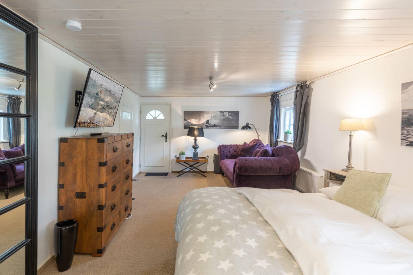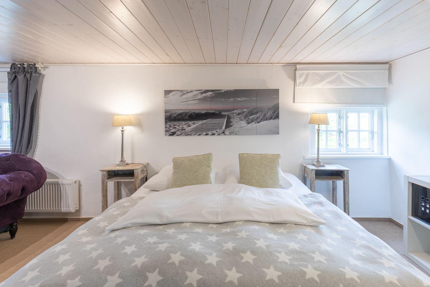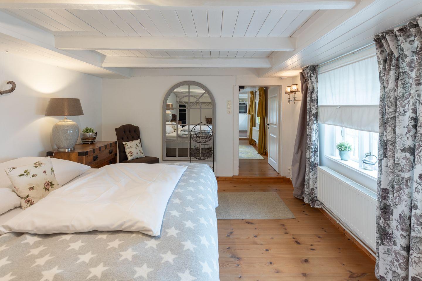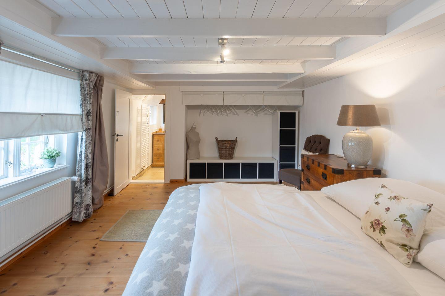 Das Ferienhaus verfügt über drei Schlafzimmer, die alle jeweils mit einem Boxspringbett ausgestattet sind (2x 180 x 200 und 1x 160 x 200 mit jeweils einer durchgehenden Matratze). Die Betten sind auf Wunsch bei Ankunft liebevoll bezogen.