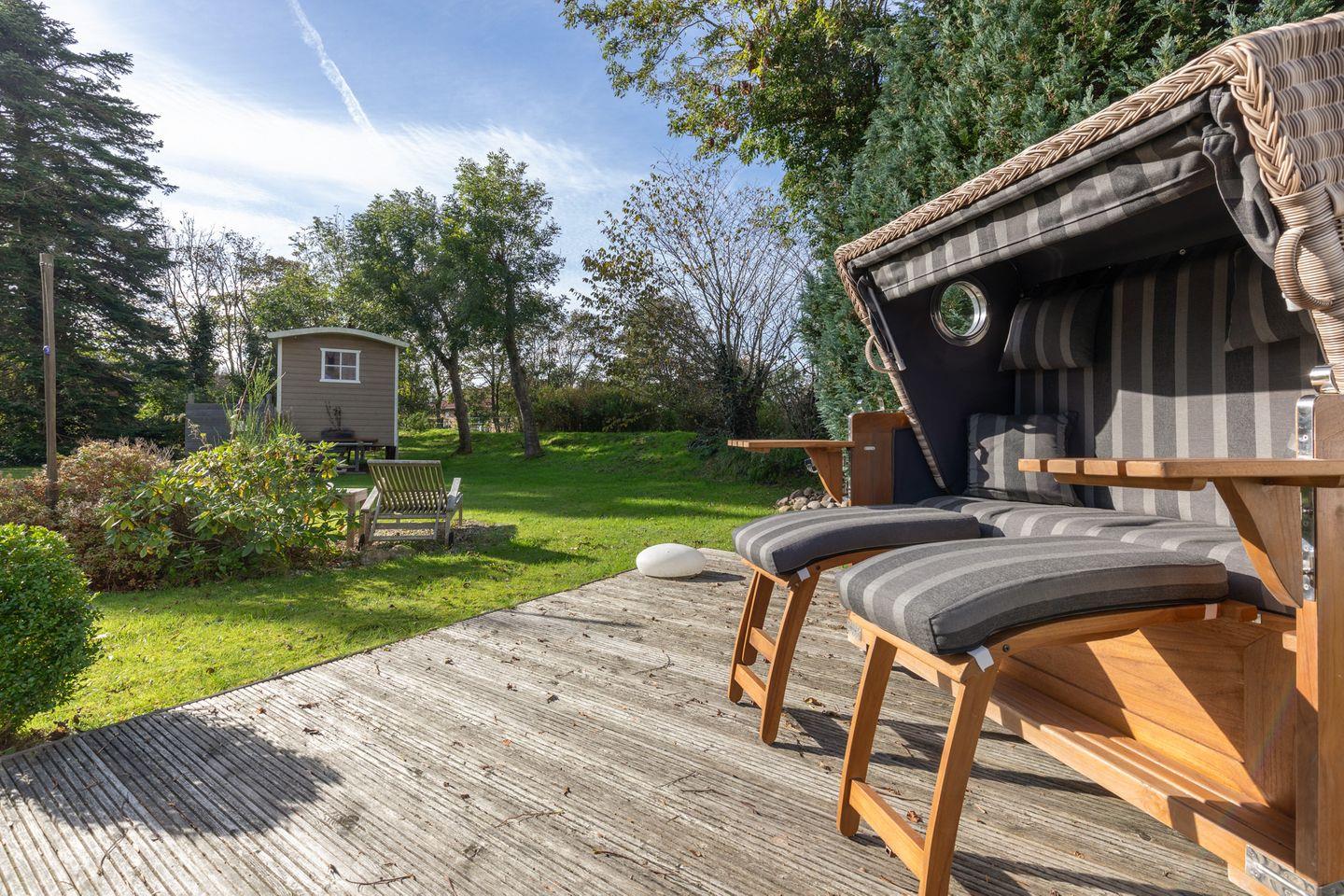 Ihnen steht im Garten ein Saunawagen (Saunanutzung gegen Gebühr) zur Verfügung, sodass schöne Wellness-Tage auf Ihrem Programm stehen könnten.