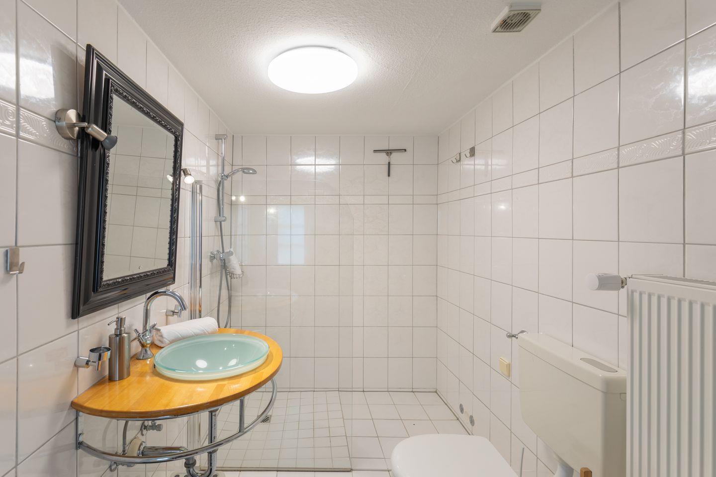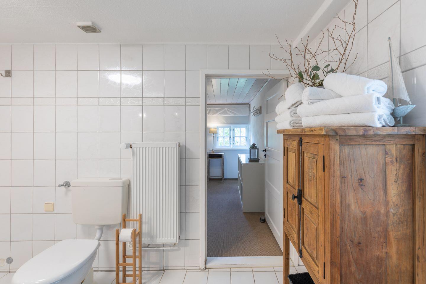 Ein Hinweis für unsere größeren Gäste: da im vorletzten Jahrhundert die Menschen noch kleiner waren, haben wir in einigen Hausbereichen teilweise eine Balkenhöhe von ca. 1,85 m. Eine der Türen hat eine Durchgangshöhe von ca. 1,70 m. Ansonsten variiert die Deckenhöhe zwischen ca. 1,85 m und 2,10 m.