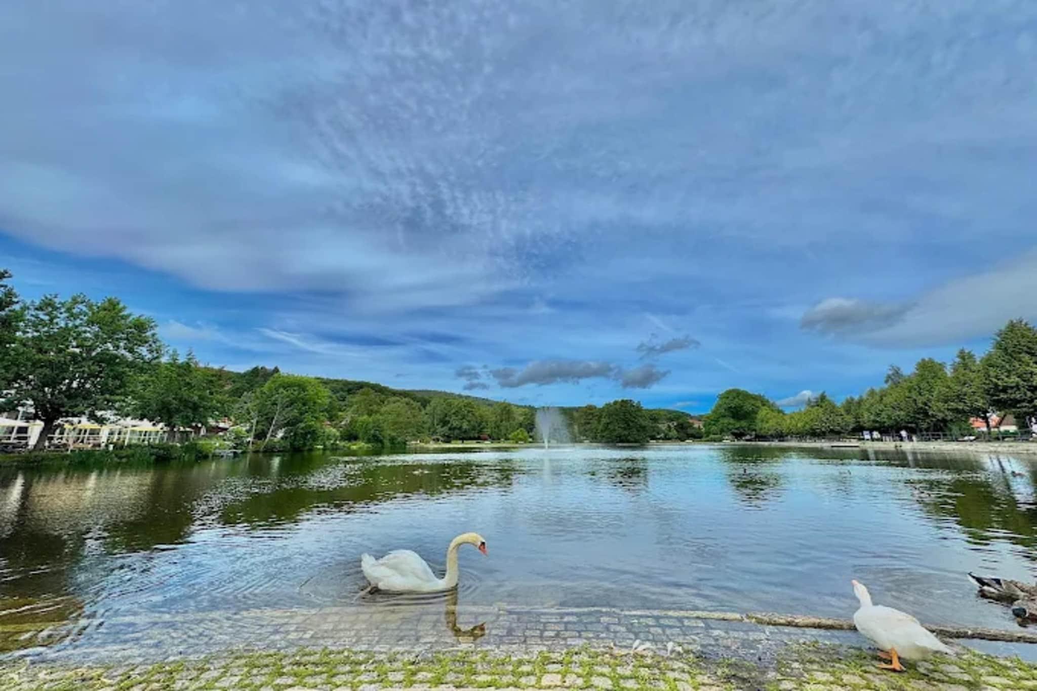 This cozy ground-floor apartment in Ilsenburg is perfect for families seeking nature and comfort. Just 600 meters from the town center and surrounded by forest, it’s an ideal base to explore the Harz region. Nearby attractions include the majestic Brocken summit, the romantic Ilse Valley, and the historic Wernigerode Castle. For cultural charm, Kloster Ilsenburg and the Aviation Museum offer fascinating experiences. The apartment features a spacious living room with satellite TV and radio, a large kitchen with modern appliances, and a family-friendly bedroom with a double bed and bunk bed. The bathroom includes a bathtub with shower, and central heating ensures year-round comfort. Outside, enjoy a shared garden with play equipment, trampoline, sand pit, charcoal barbecue, and garden furniture. Bicycle storage and on-site parking add convenience. Surrounded by forest trails and just 100 meters from a public swimming pool, the location is perfect for outdoor adventures. Dining options nearby include rustic favorites like Zur Waldschanke, fresh seafood at Mullers Fisch und Speisegaststatte, and Italian delights at Pizza Italia.