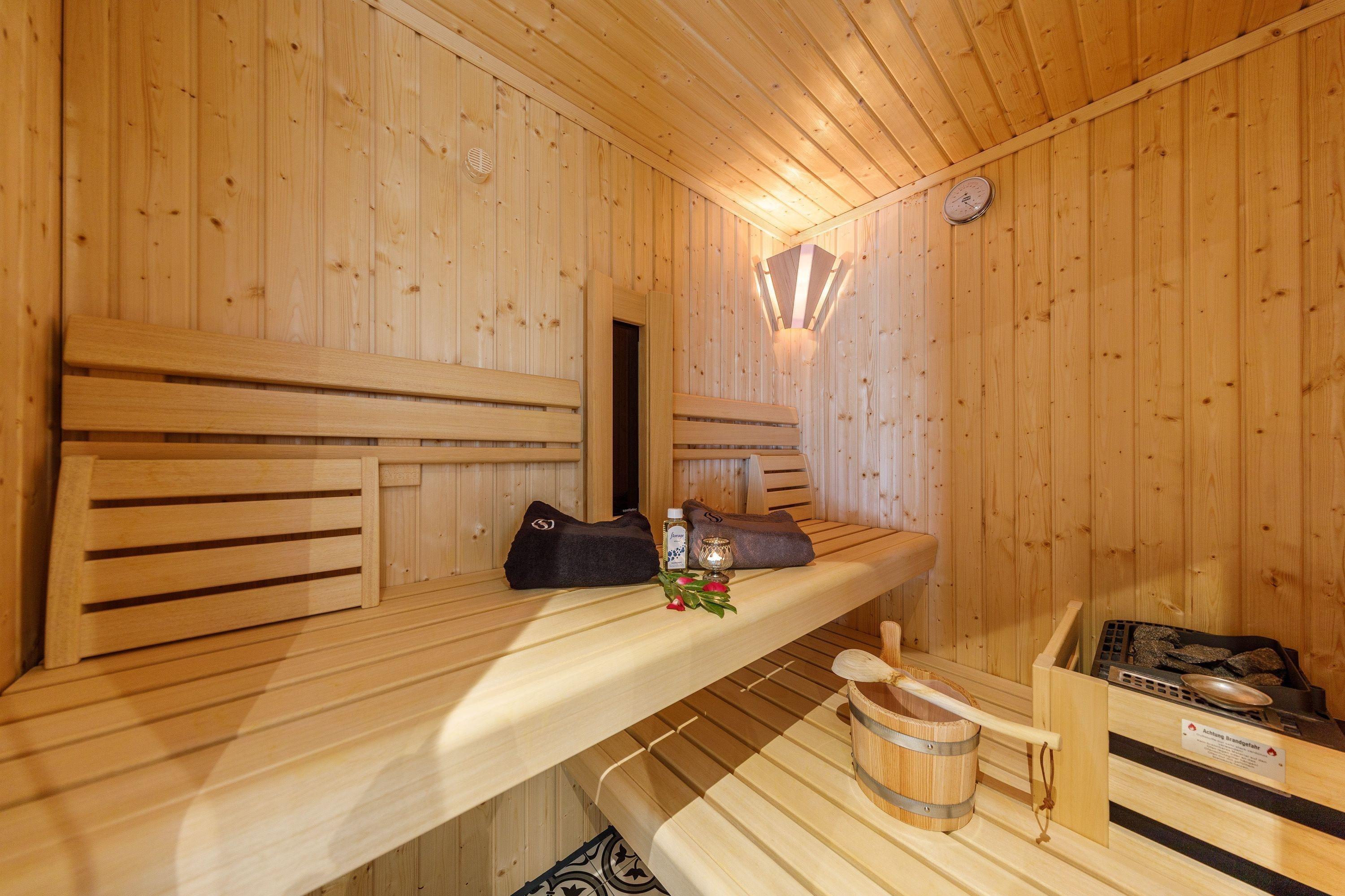 Eigene Sauna mit 4 Badeformen plus Infrarot, 2 Duschbäder mit ebenerdigen Einstieg und WC, Fön, Kosmetikspiegel, Handtuchheizkörper, Fußbodenheizung, Waschmaschine und Wäschetrockner, Bügelbrett und -eisen, Zur Erstausstattung gehören: 2 Handtücher (ein Hand- / Duschtuch pro Person), Saunahandtücher werden bei Bedarf zur Verfügung gestellt., Toilettenpapier, Seife