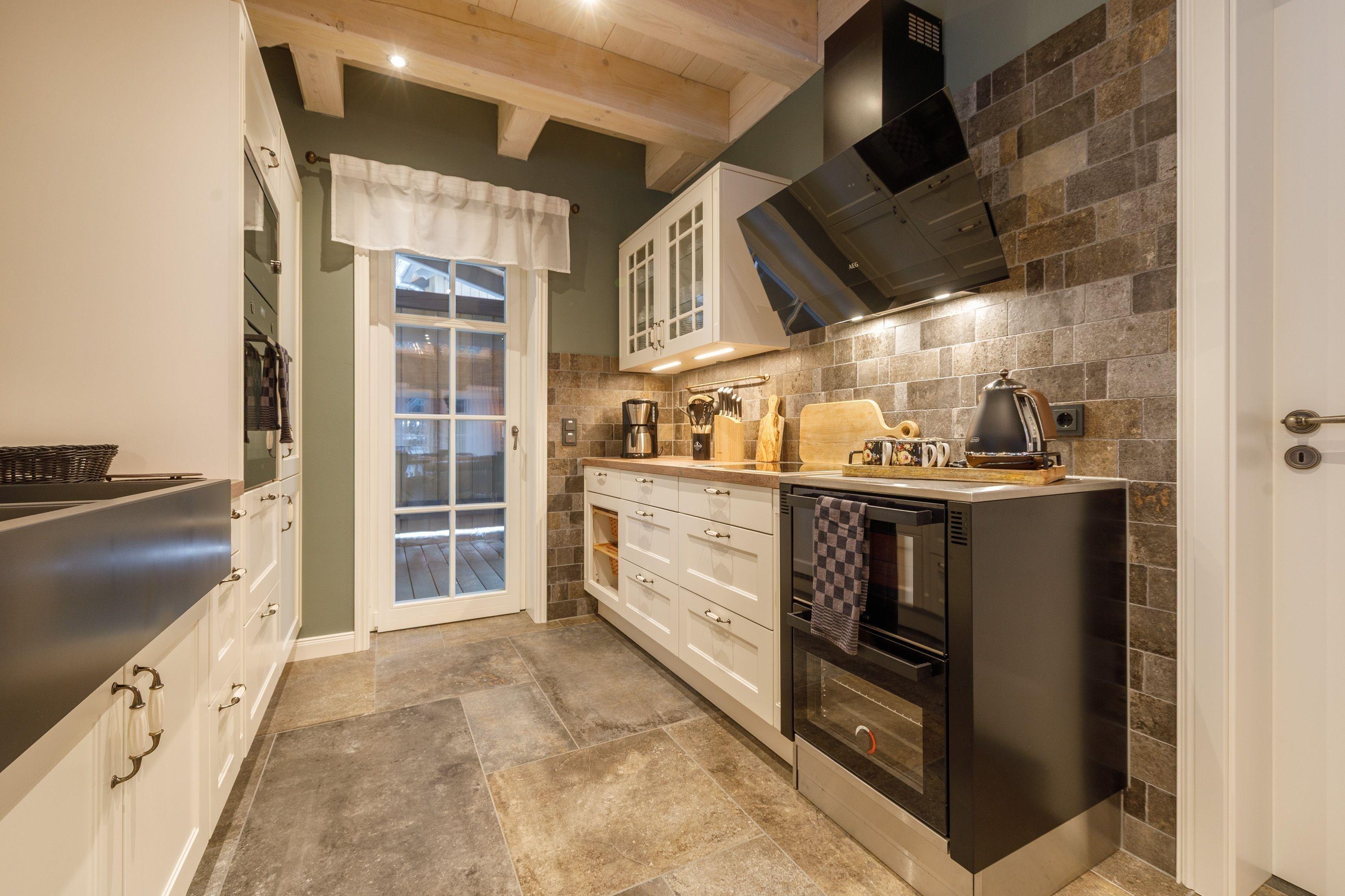 Vollausgestattete Küche plus einer Küchenhexe, Geschirr, Besteck, Kochutensilien, 4 Plattenherd (Ceranfeld), Backofen, Mikrowellengerät, Kühl- / und Gefrierkombination, Geschirrspülmaschine, Toaster, Kaffeemaschine (Filter Größe 4), Wasserkocher, Eierkocher, Mixer und Kuchenbackform, Zur Erstausstattung gehören: Spülmittel, Spülmaschinentab