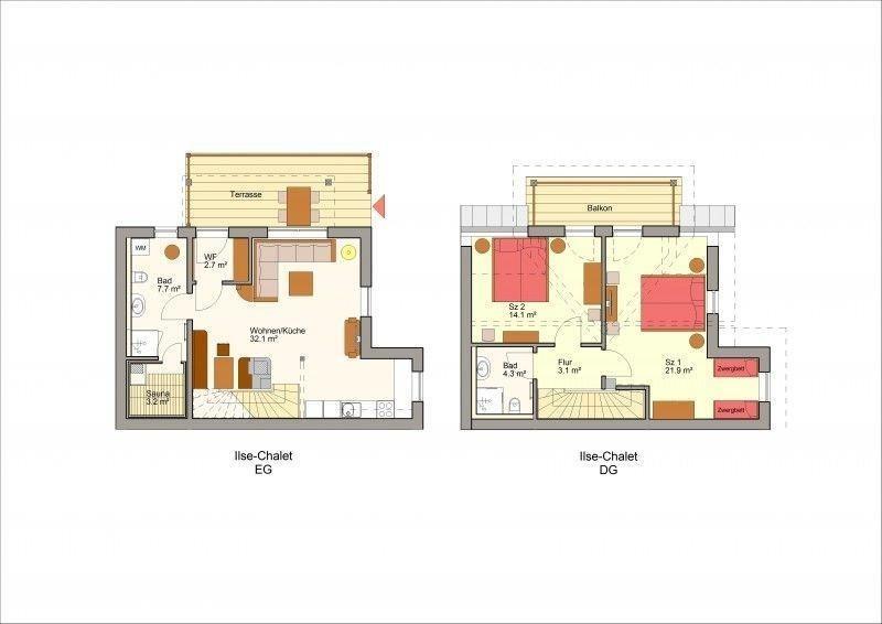Für Kinder stehen zwei 7 Zwerge Betten aus dem "Otto" Film bereit.
