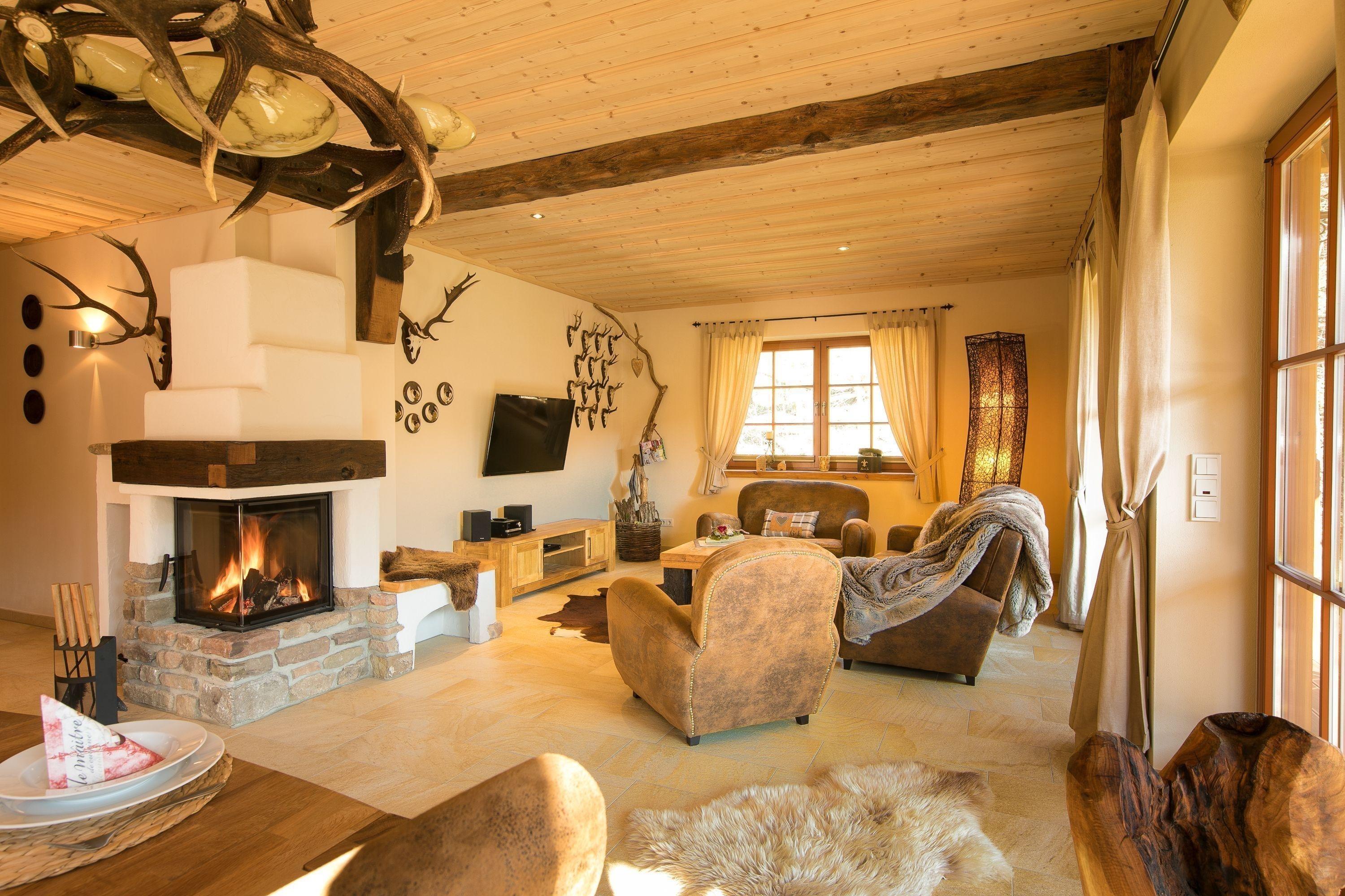 Draußen lockt die Ilse und die Berge und drinnen ein gemauerter Kamin, eine finnische Trockensauna, einzigartige Möbel aus aufgearbeiteten Altholz, bodenständige Naturstoffe wie Stein, Felle und massives gebürstetes Lärchenholz.