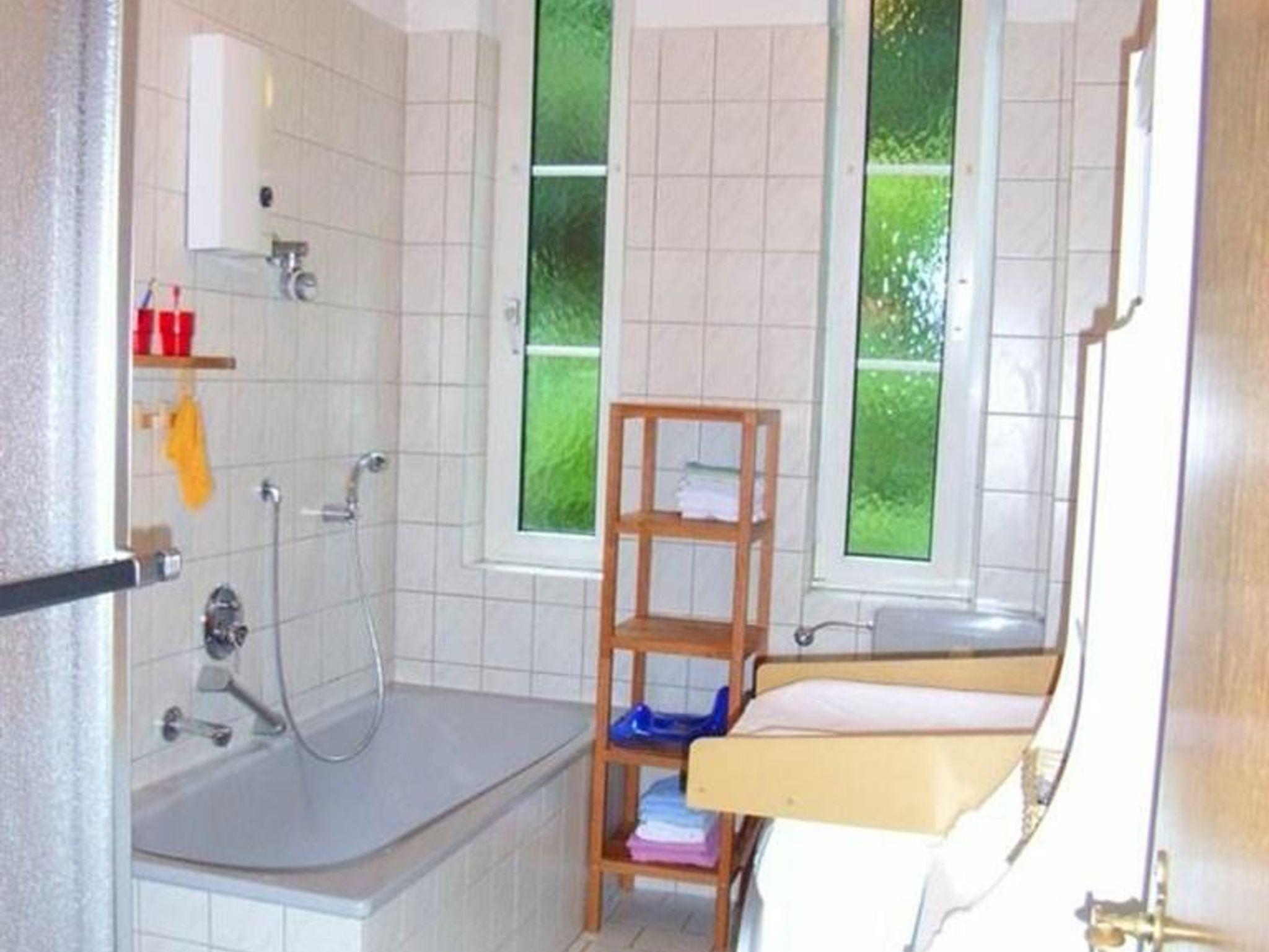 Zur Ausstattung gehören eine Waschmachine, ein Wickeltisch, eine normale und eine Baby-Badewanne, eine Dusche, eine Kühl-/Gefrierkombination, eine Mikrowelle und eine Spülmaschine.