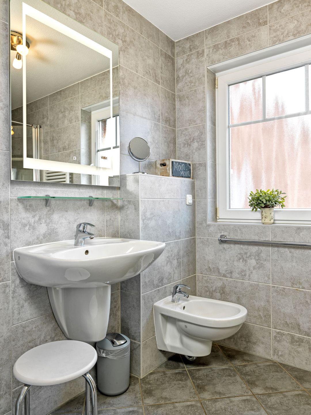Im Obergeschoss erwarten Sie ein Badezimmer mit Dusche/WC/Bidet, ein großzügiges Schlafzimmer mit zwei Einzelbetten sowie ein Schlafzimmer mit einem Doppelbett für insgesamt 4 Personen.