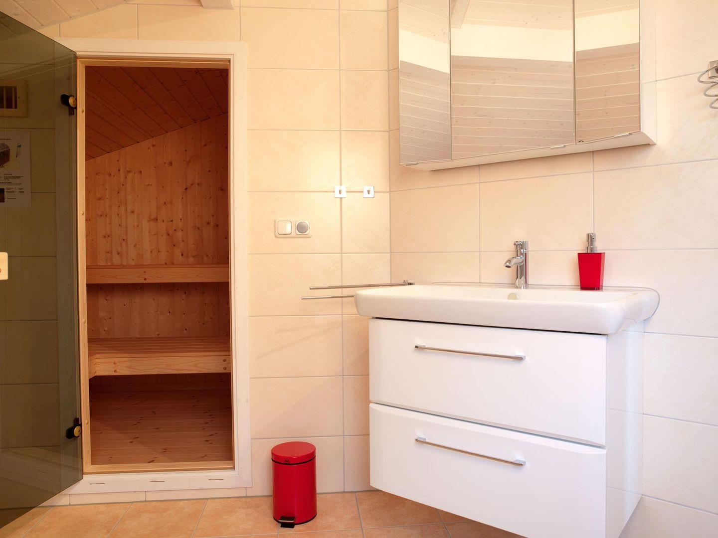 Das durch viel Fensterfläche sehr helle Wohnzimmer mit stylischen Möbeln lässt keine Wünsche offen. Der Kaminofen sorgt für heimelige Wärme. Ein Flat-TV mit DVD Spieler, eine Minianlage mit Radio und CD-Spieler sorgen für Zerstreuung. Vom Wohnzimmer aus gelangen Sie auf die Terrasse, die mit Terrassenmöbeln ausgestattet ist. 2 schöne Schlafzimmer, eins mit Doppelbett und einem zweitem TV, eins mit Etagenbett (untere Liegefläche 140cm breit) erwarten Sie. Die offene Küche im Eingangsbereich bietet Ihnen allen Komfort (neu: Senseo-Kaffeemaschine), den Sie für einen gelungenen Urlaub brauchen. Die beiden Schlafzimmer sowie das Wohnzimmer sind mit Insektenschutzfenstern ausgestattet. Ein Gäste WC mit Dusche sowie das große Bad mit Whirlpool und Sauna runden die perfekte Ausstattung ab.