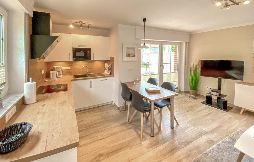 Das 2-Zimmer-Apartment befindet sich im Erdgeschoss eines gepflegten Friesenhauses. Mit ihren warmen Farben, dem Fußboden in Holzoptik und ihrer modernen, maritimen Einrichtung, ist sie bestens geeignet, um hier einen wunderbaren Urlaub zu verbringen.