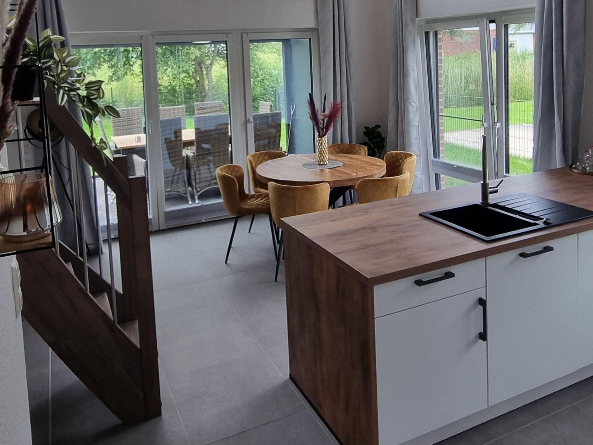 Unser nagelneues Ferienhaus BRANDUNGSPERLE liegt unmittelbar hinterm Deich und ruhig gelegen im Feriendorf Jade-Sehestedt.