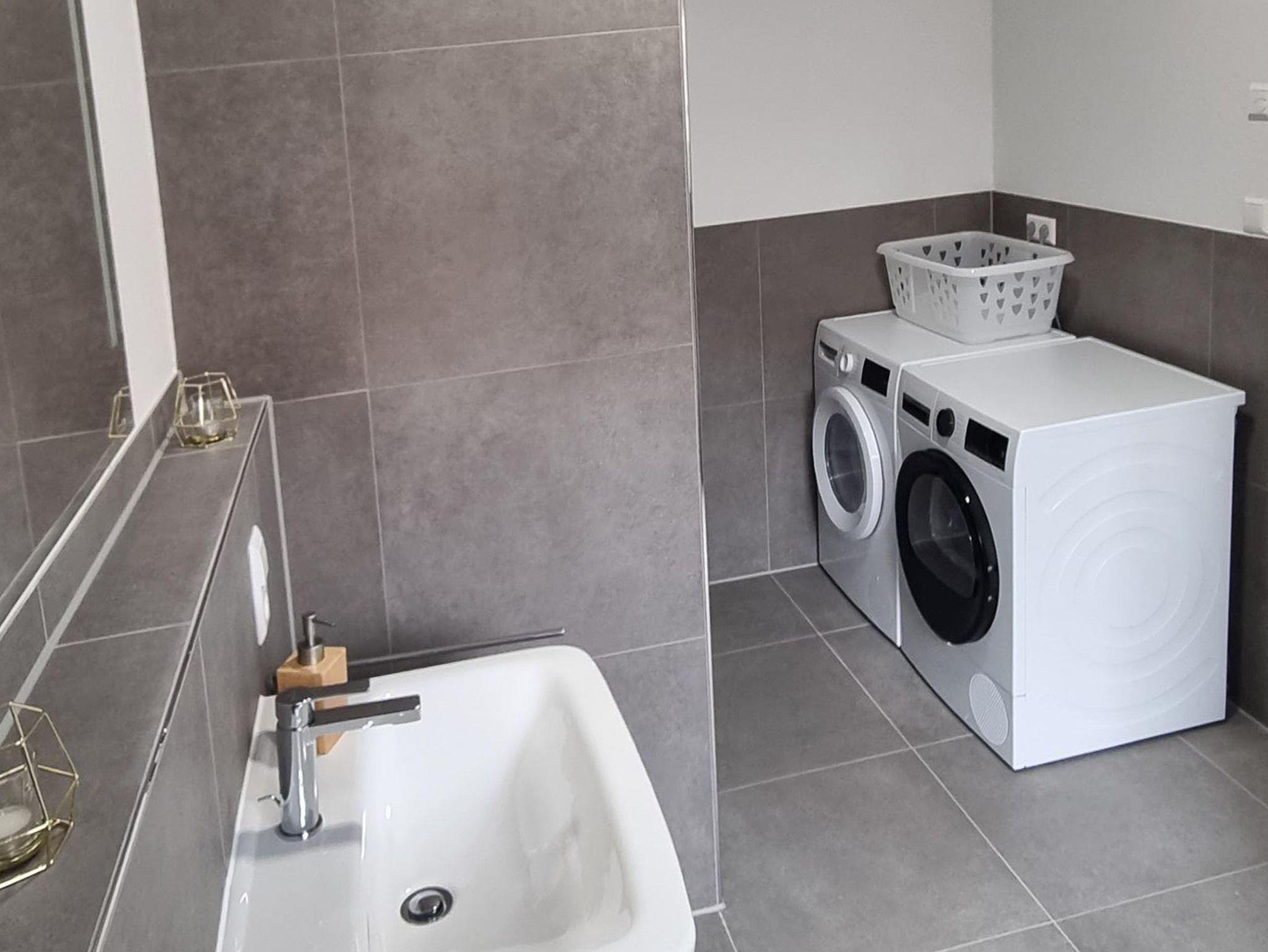 • 1 großes Badezimmer mit bodengleicher Dusche
