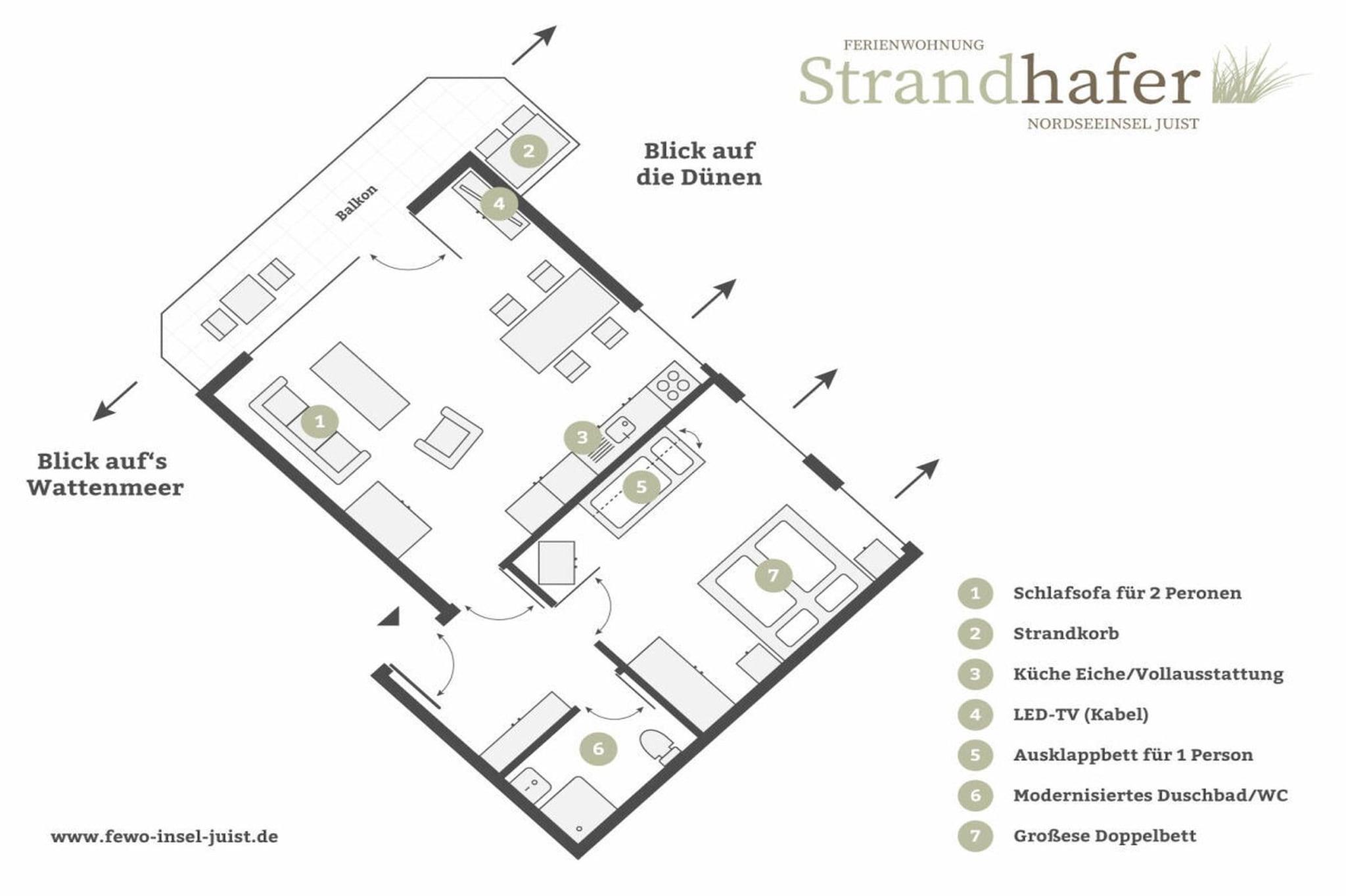 Apartment with a view of the dunes and mudflats, ideal for up to 5 people. The apartment was renovated in 2019. Further information: www.fewo-insel-juist.de