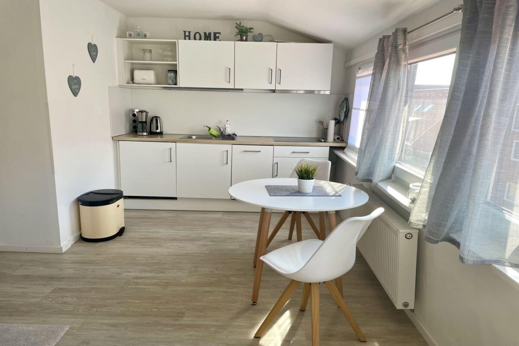This bright, modernly furnished attic apartment is centrally located in the eastern part of the island. Completely renovated and newly furnished in 2016, it offers all the comforts for a relaxing holiday on Juist for two people. In addition to a living room with a kitchenette (including a ceramic hob and dishwasher), dining area, and comfortable sofa, it features a bedroom with a large double bed and a modern shower room with a window.