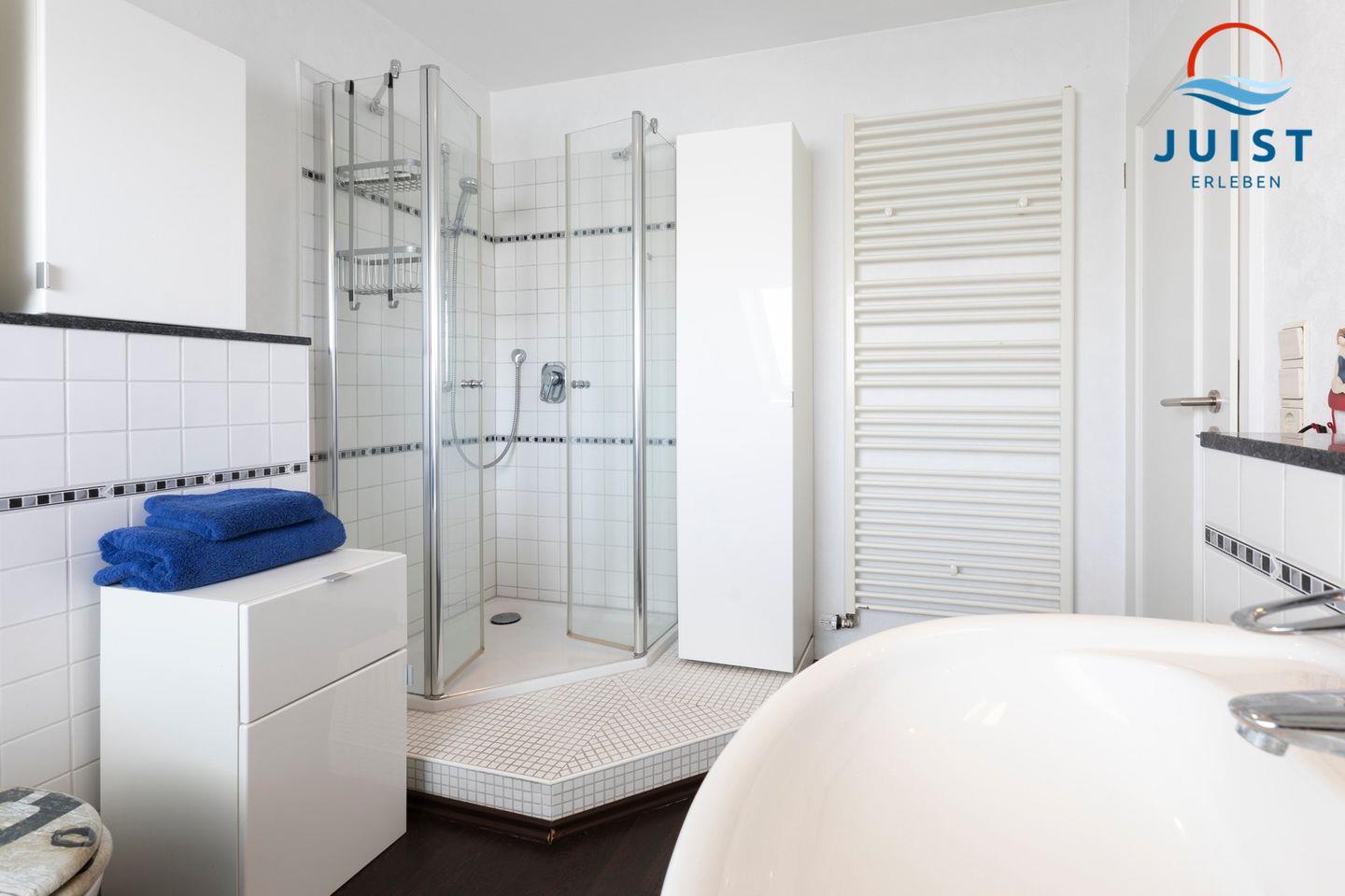 Das helle und geräumige Duschbad mit Fenster bietet viel Tageslicht und eine angenehme Atmosphäre.