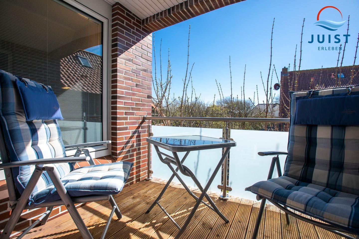 Auf ca. 85 m2 finden bis zu 2 Personen Platz und können es sich auf dem überdachtem Süd-Balkon mit einem Buch und einer Tasse Tee gemütlich machen.
