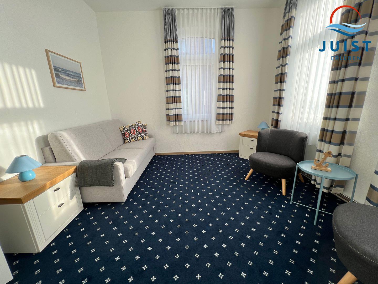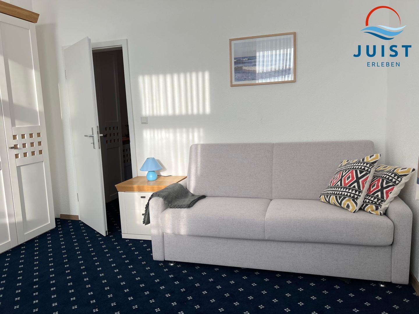 Das Zimmer 3 befindet sich in der 1 Etage und verfügt über 1 Schlafzimmer sowie ein Wohnzimmer mit Schlafcouch.