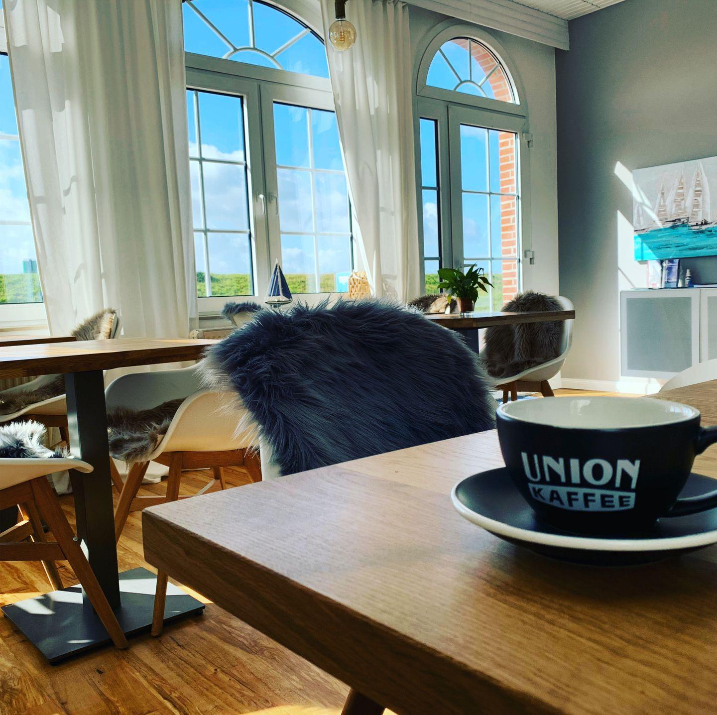 Vom Wohnzimmer aus haben Sie einen traumhaften Blick über den Deich auf die Salzwiesen und das Wattenmeer.