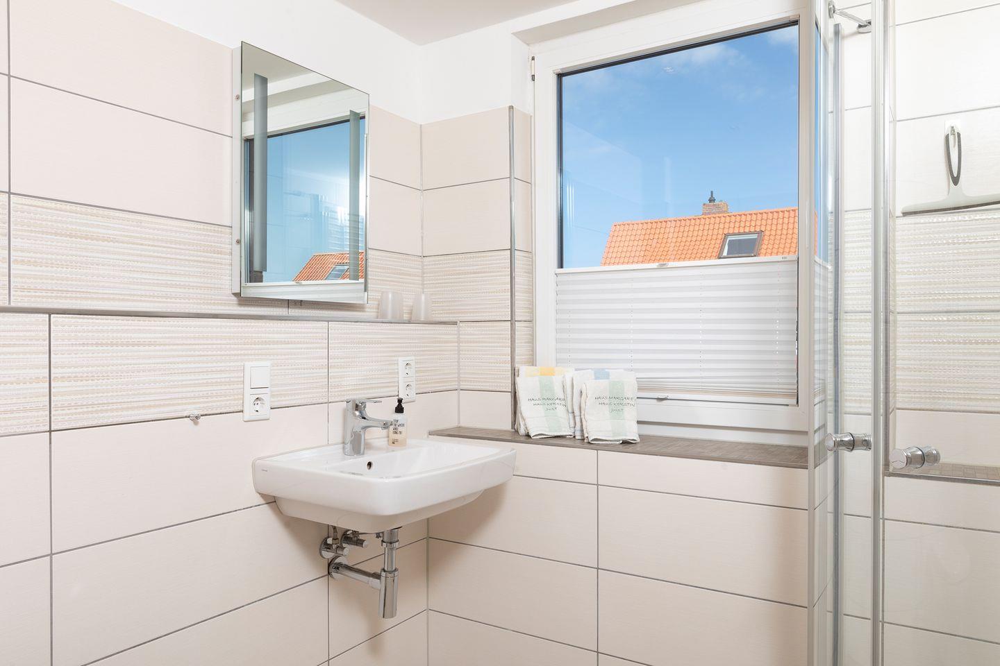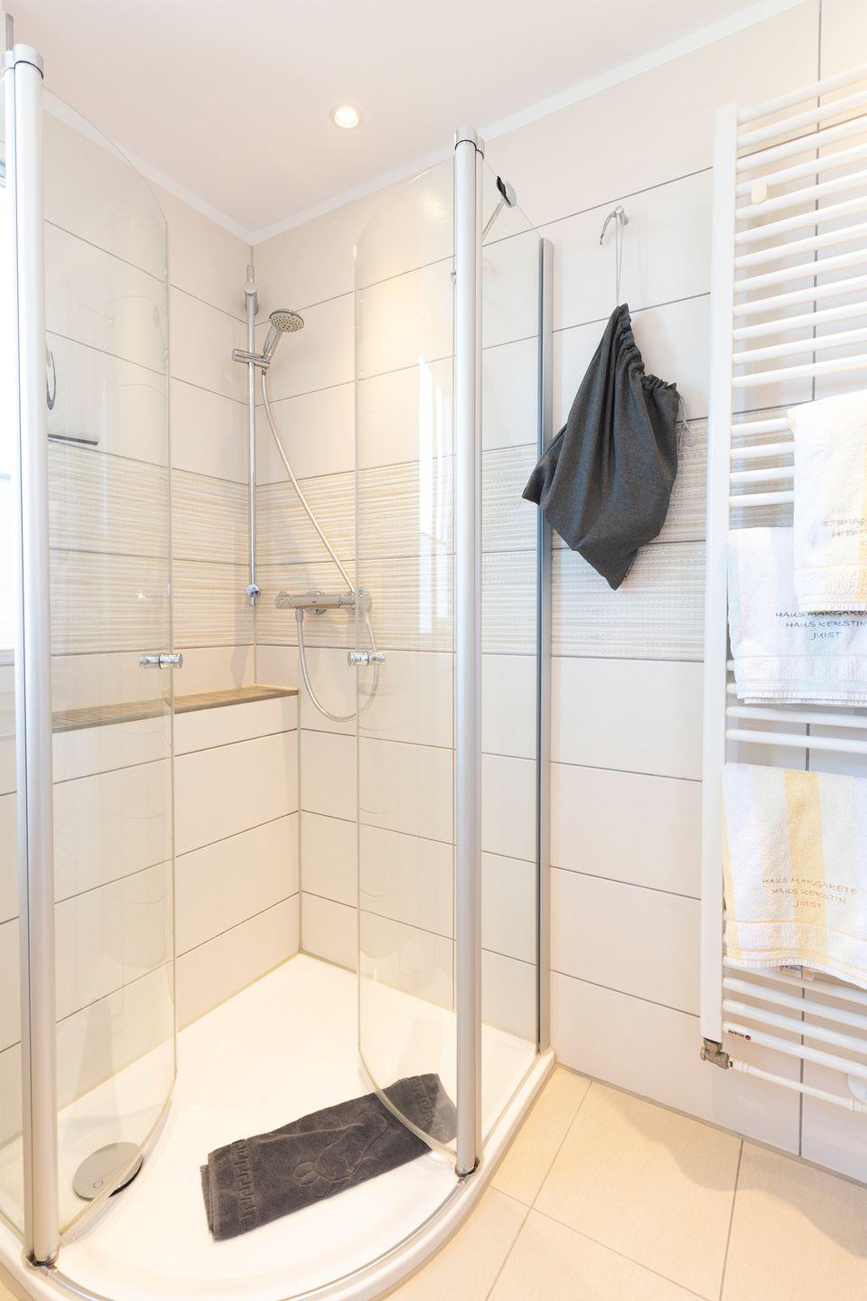 Das Bad verfügt über eine Dusche. Grundsätzlich sind ein Fön, sowie Handtücher/Duschtücher vorhanden.