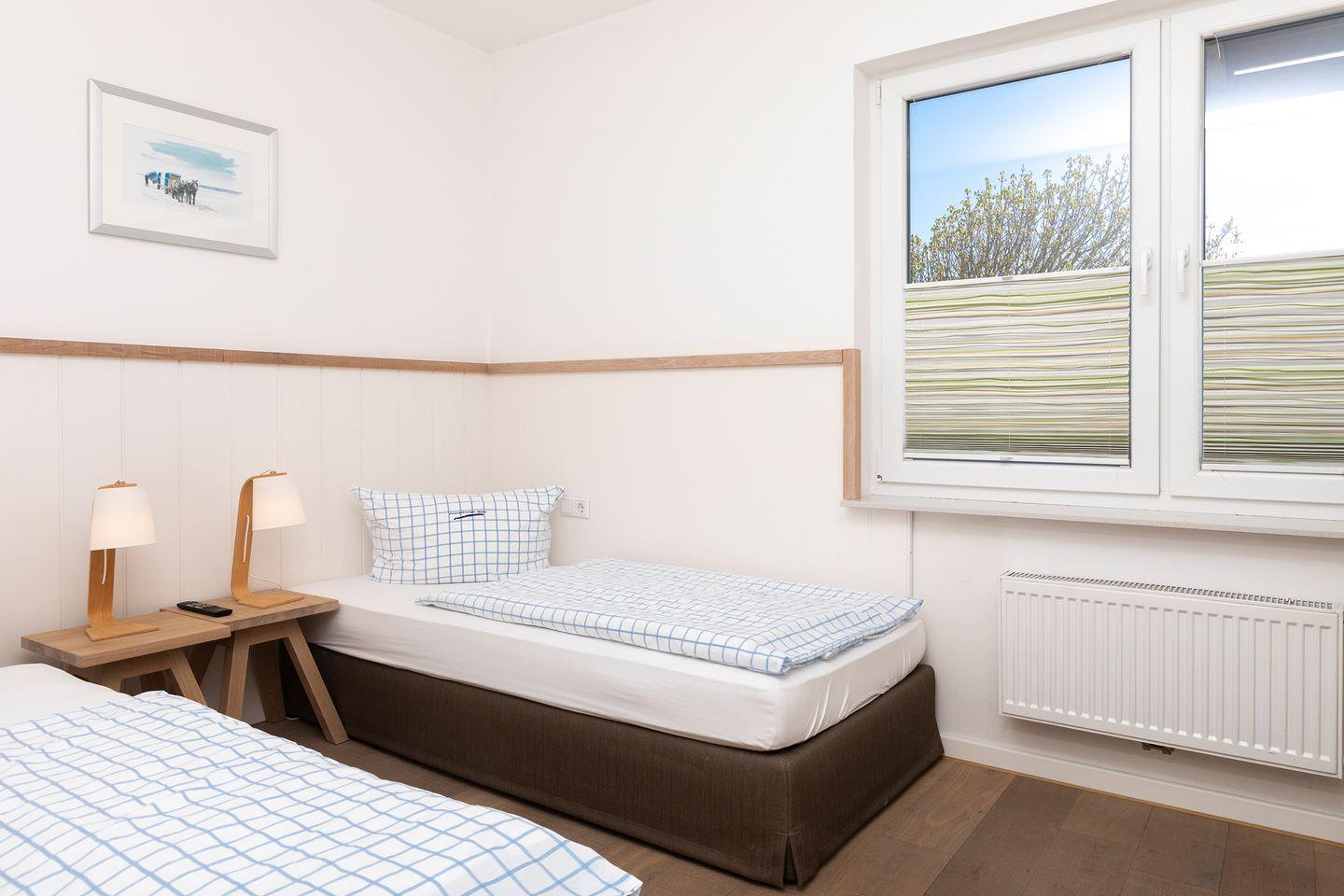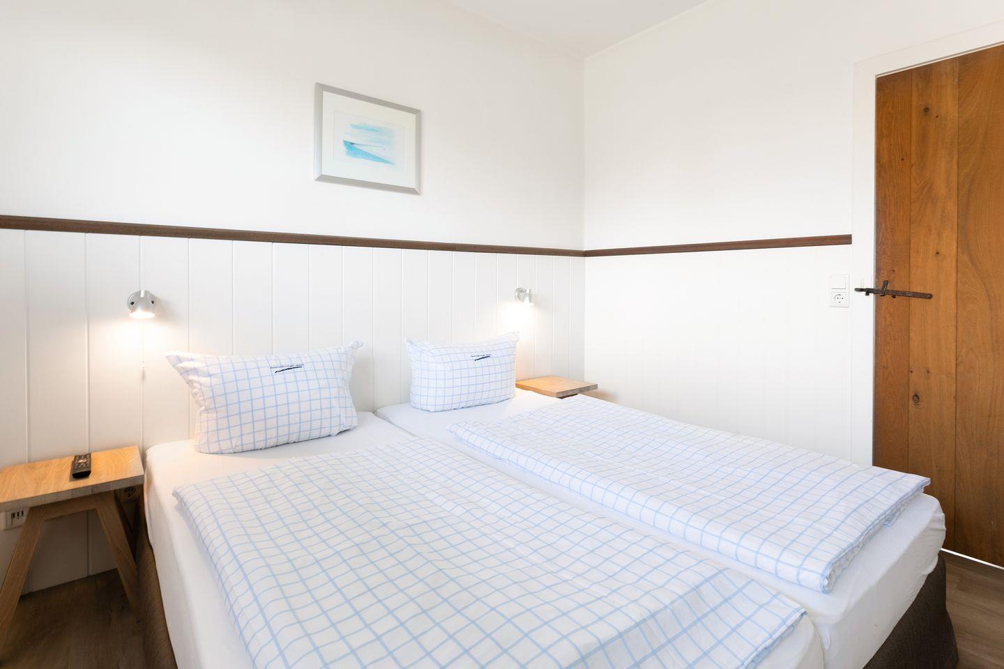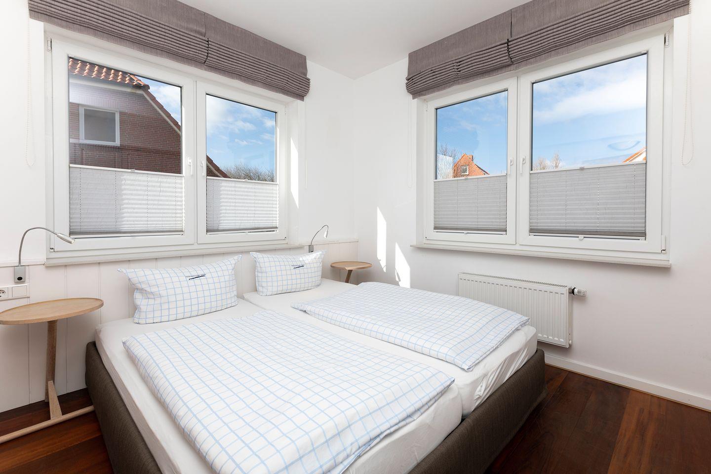 Jedes der Schlafzimmer ist mit einem Doppelbett ausgestattet, welches wahlweise in zwei Einzelbetten umfunktioniert werden kann.