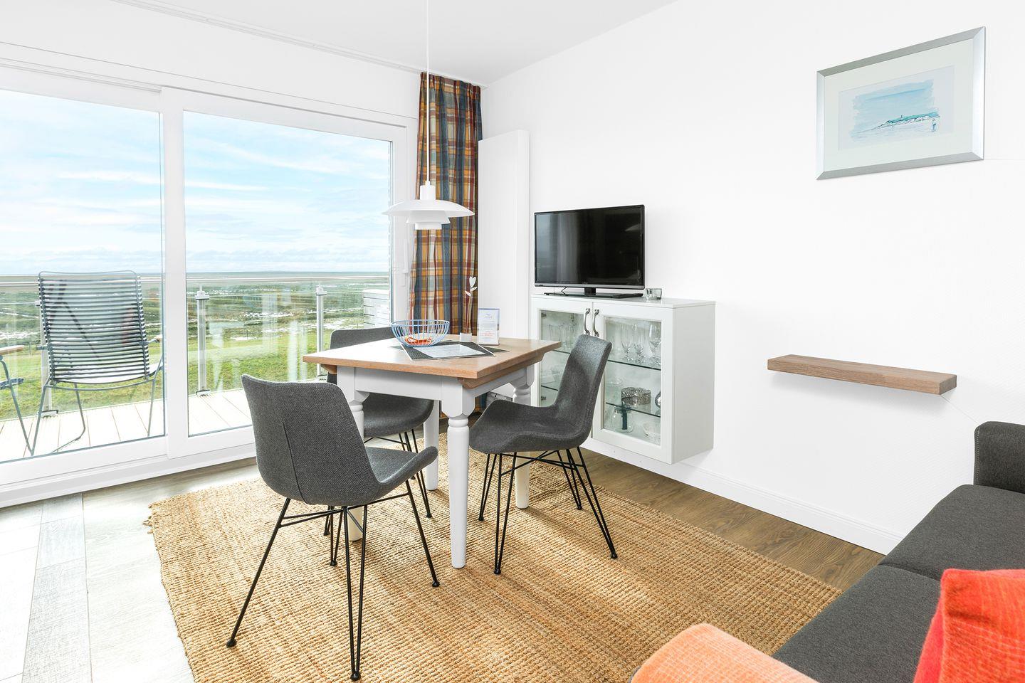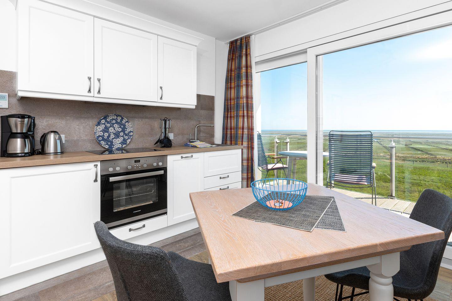 Der Balkon zur Südseite hat eine Fläche von etwa 5m² mit Blick über die Hellerwiesen und das Watt.