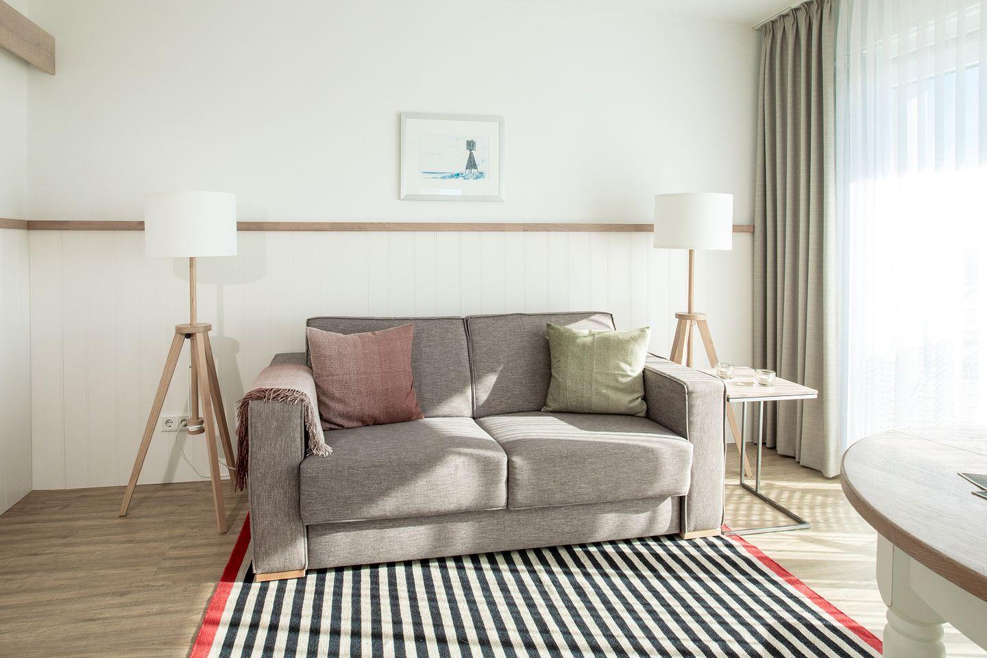"Steuerbord" kann mit der Wohnung "Dingi" kombiniert werden, um eine größere Unterkunft mit insgesamt 4 Betten zu schaffen.